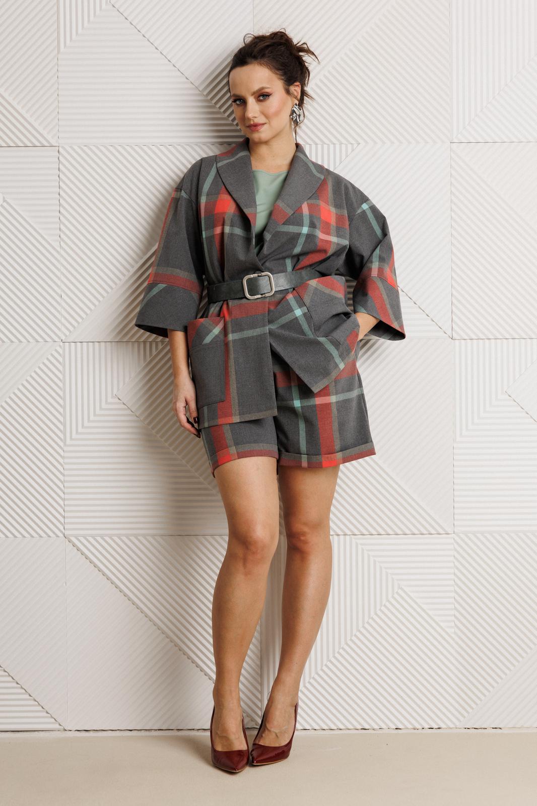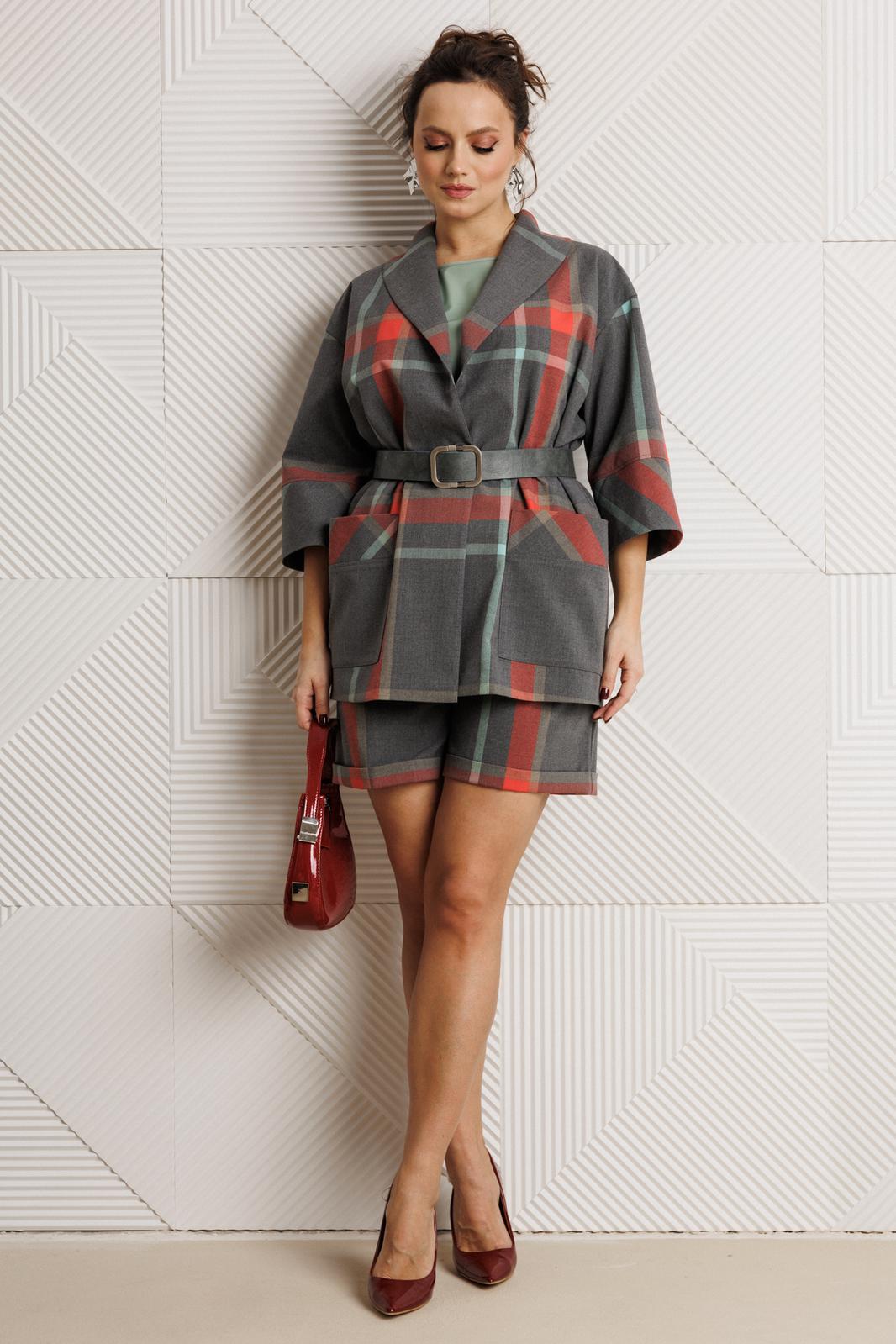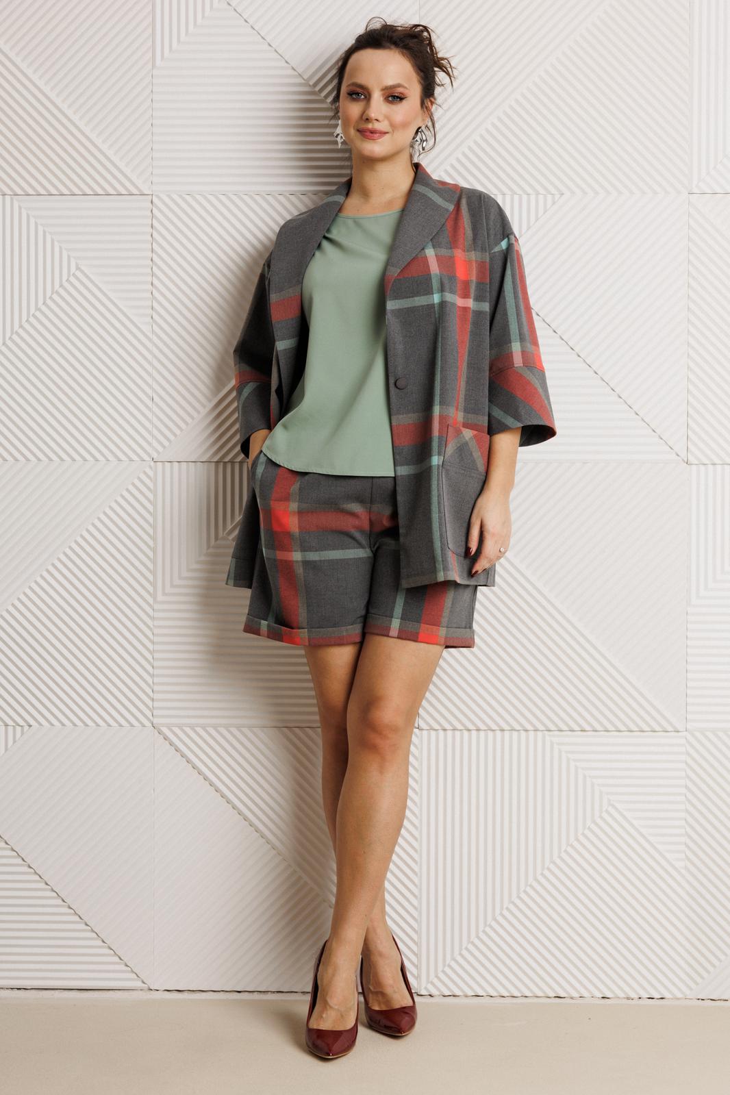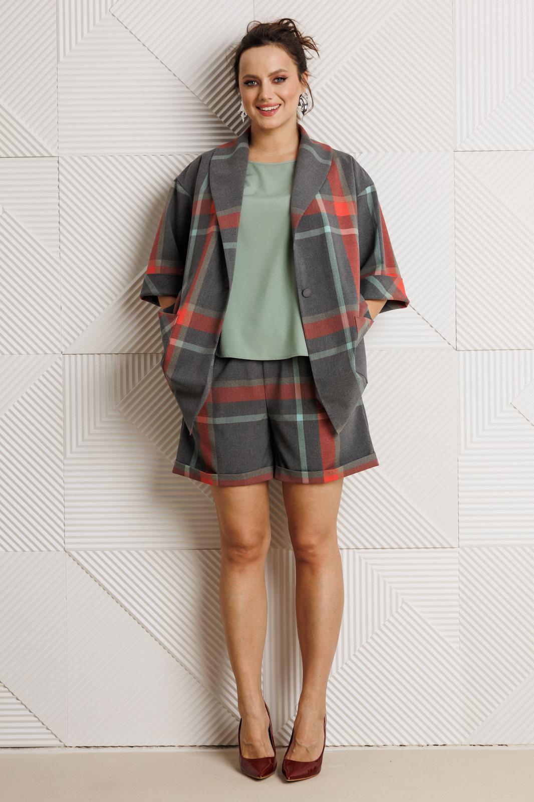 Костюм женский, состоящий из жакета, шорт и блузы.