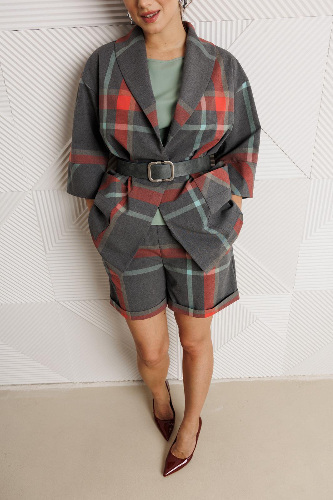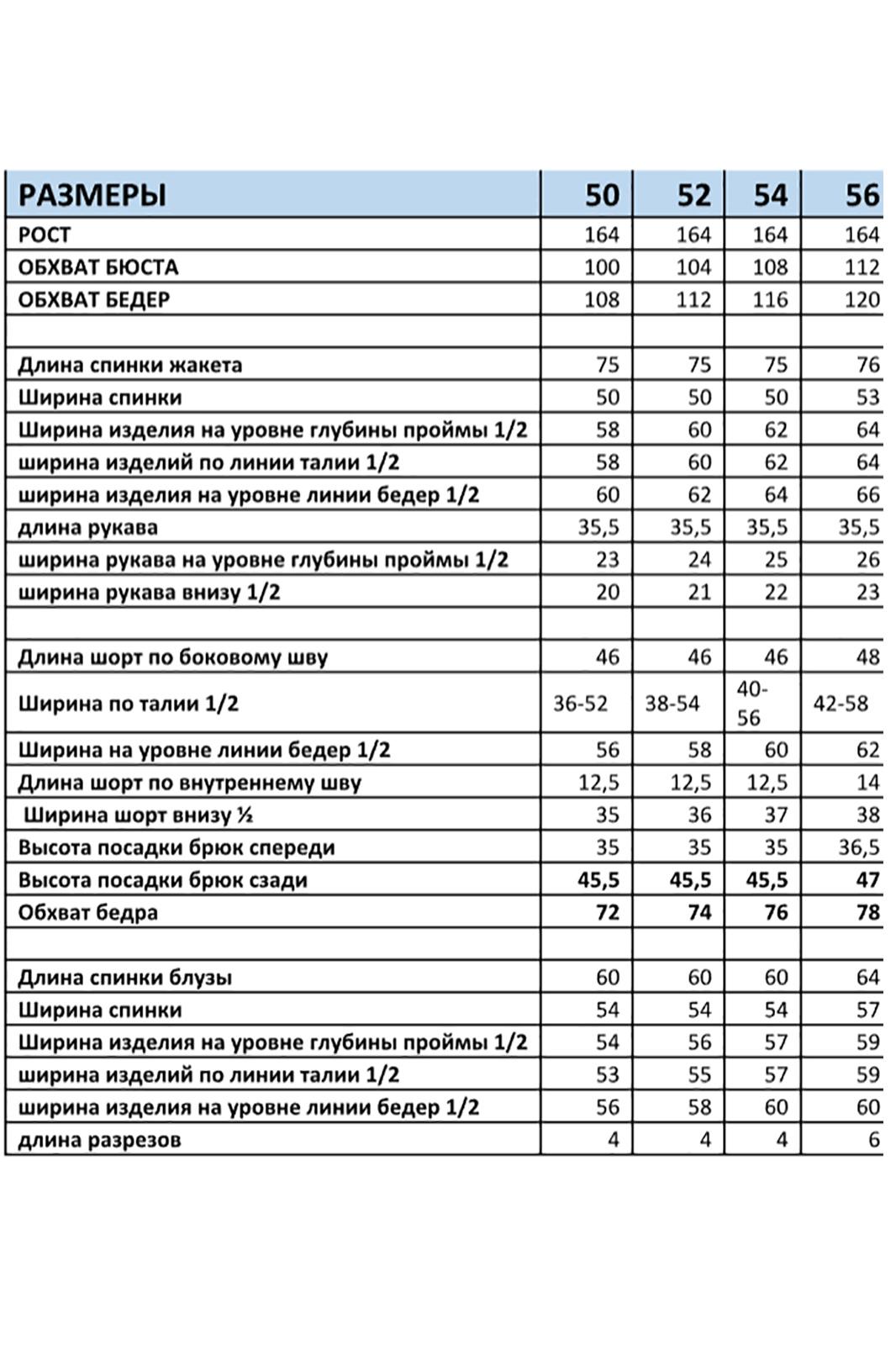 - Тип ткани: жакет, шорты- полиэстер 70%, вискоза 25%, спандекс 5%, блуза-Неагара полиэстер 95%, спандекс 5%