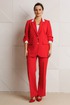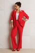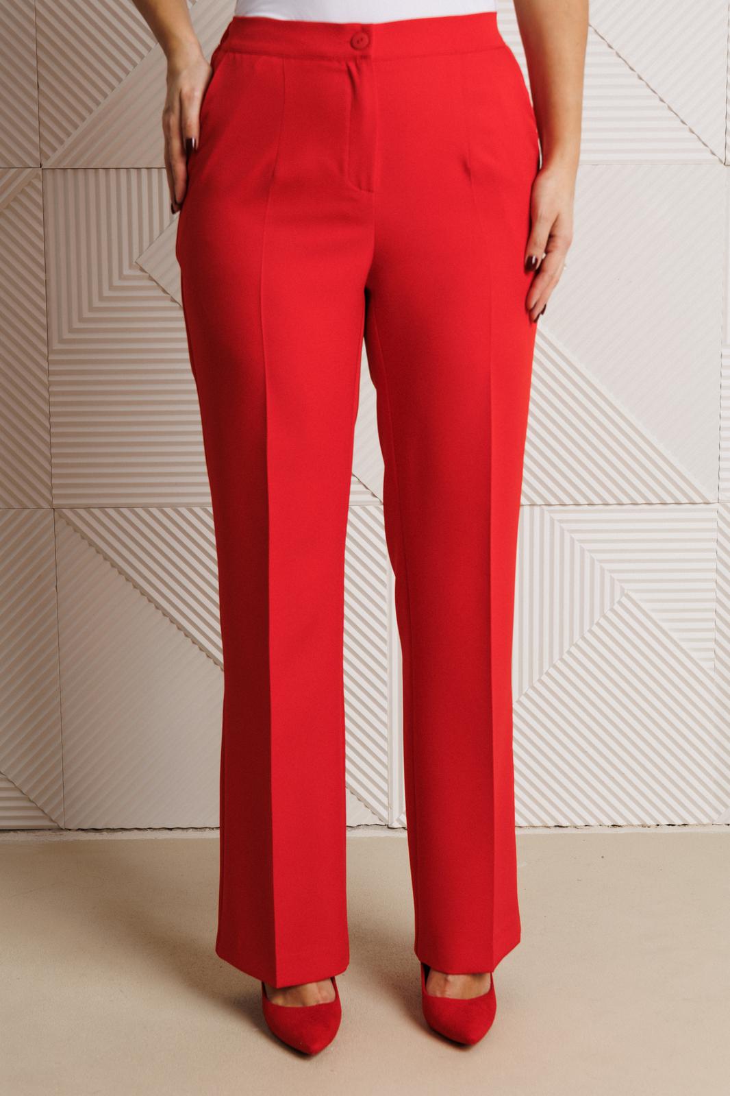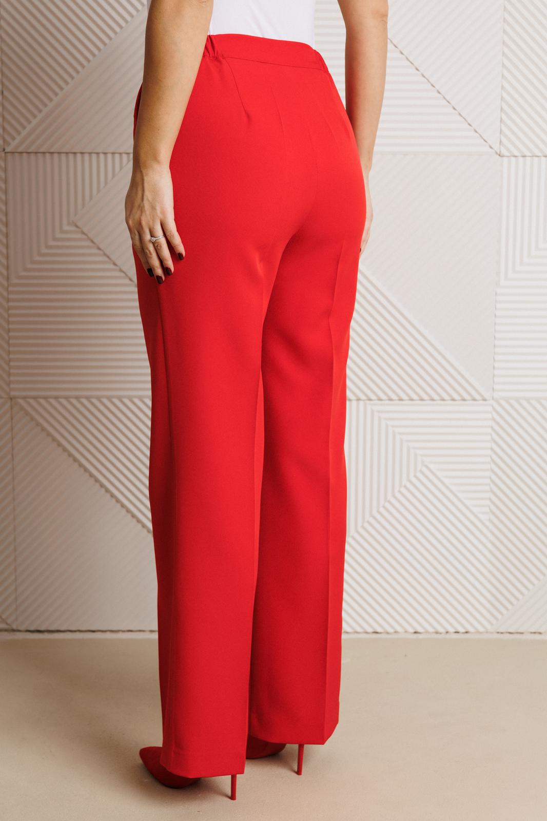 Брюки свободного прямого кроя с высокой посадкой из костюмной ткани (тянется). В боковых швах функциональные карманы. По срезу банта – застежка-молния. Верхний срез оформлен поясом с эластичной резинкой по задней половинке.