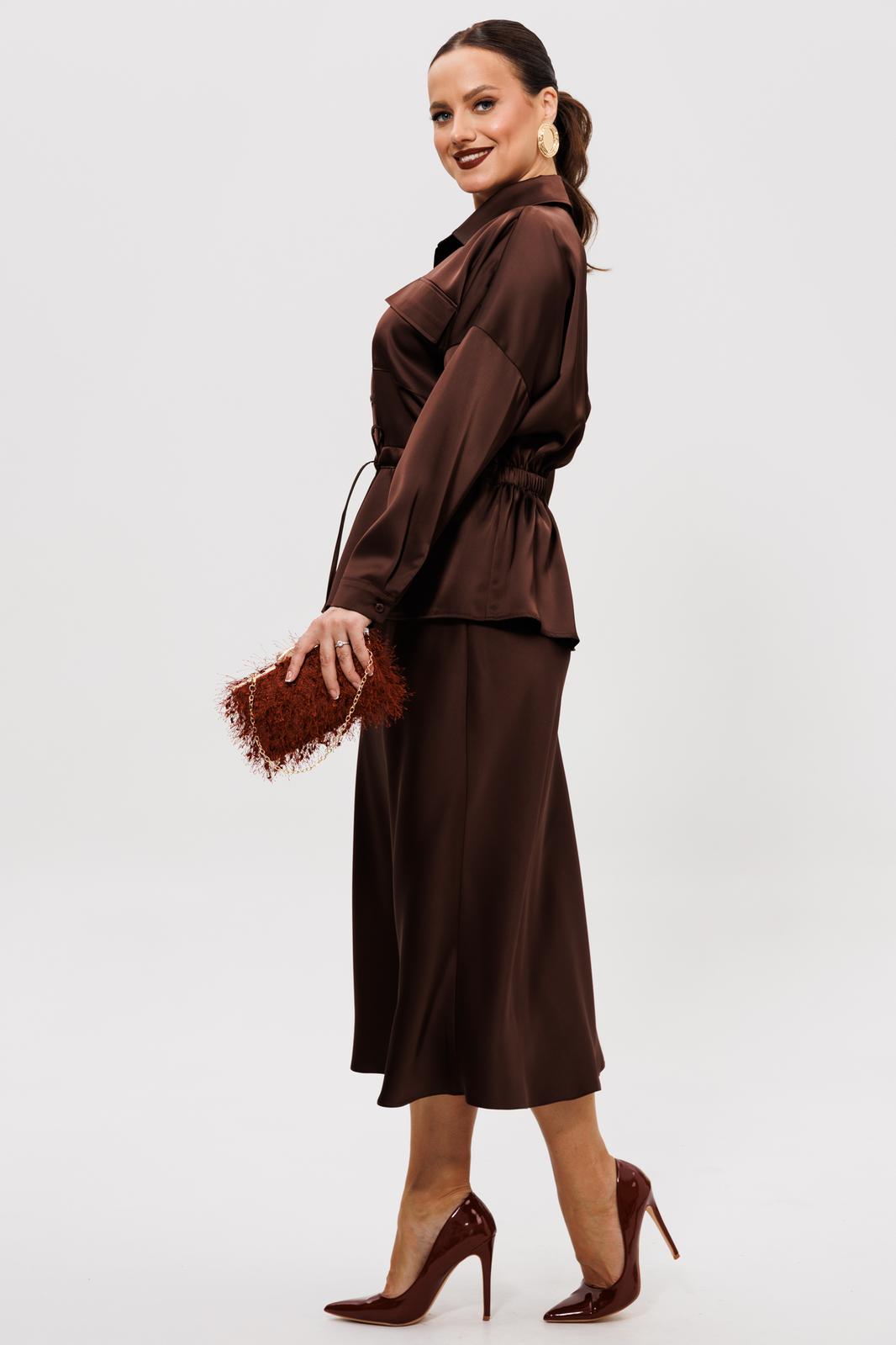 Нарядный юбочный костюм, выполненный из струящегося шелка «Армани» (тянется).