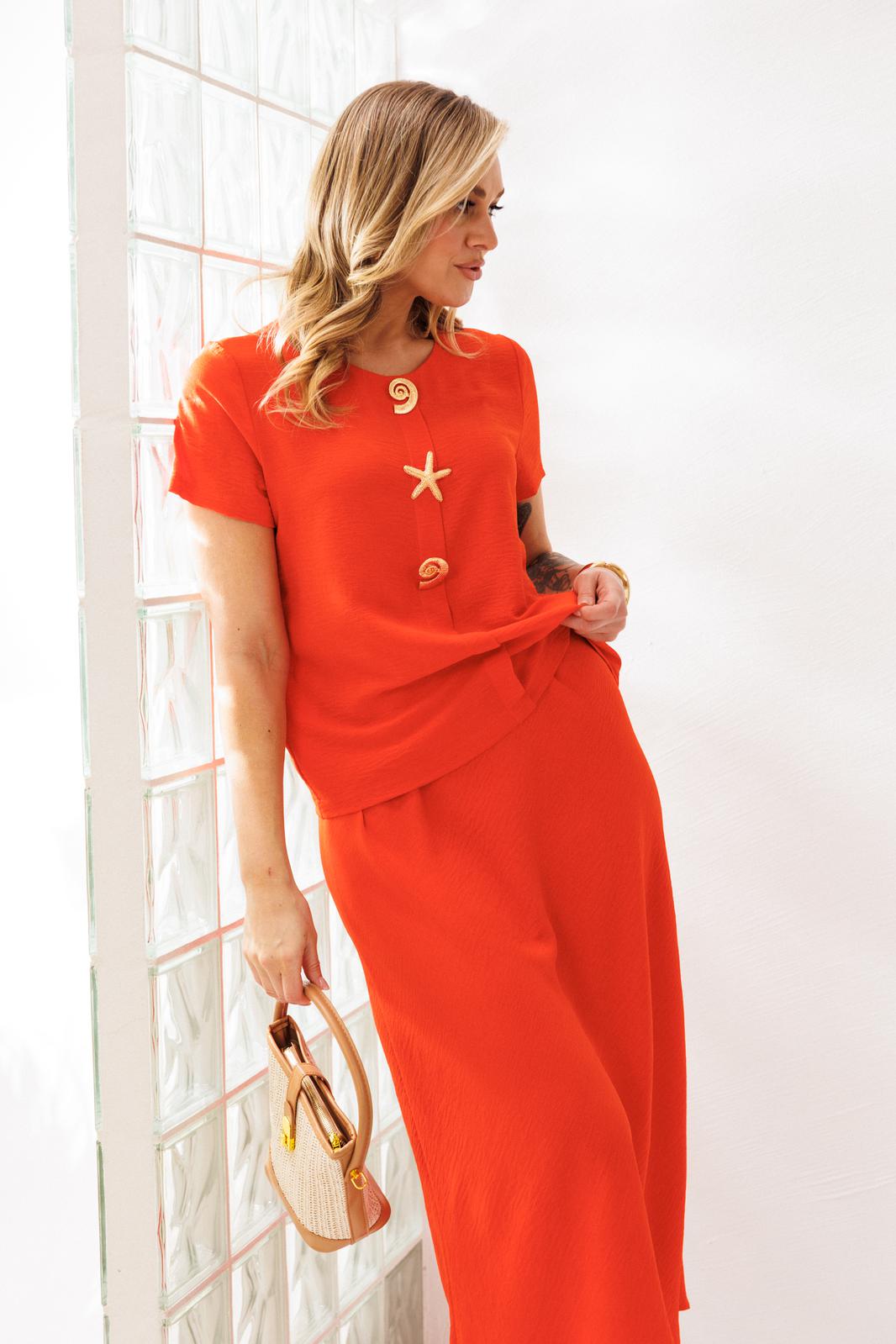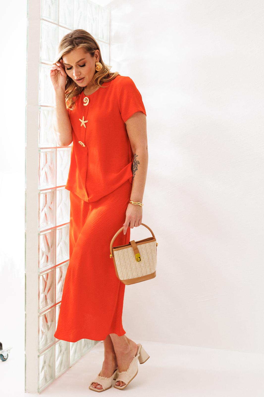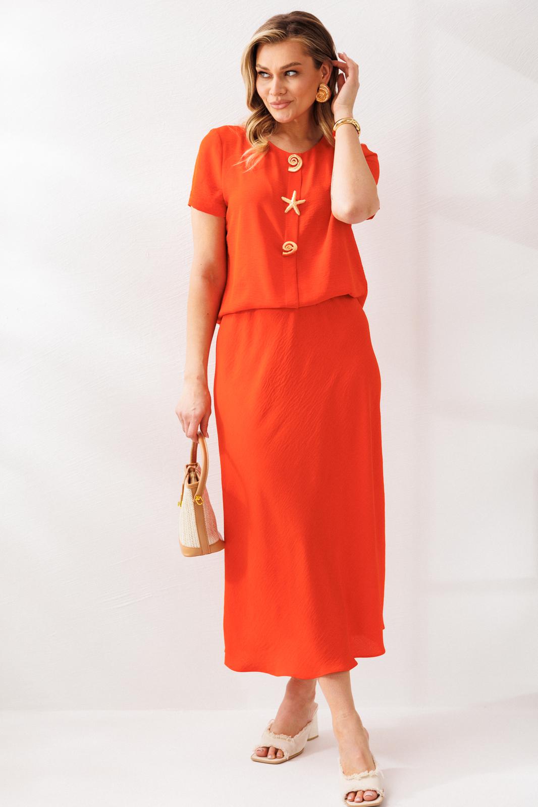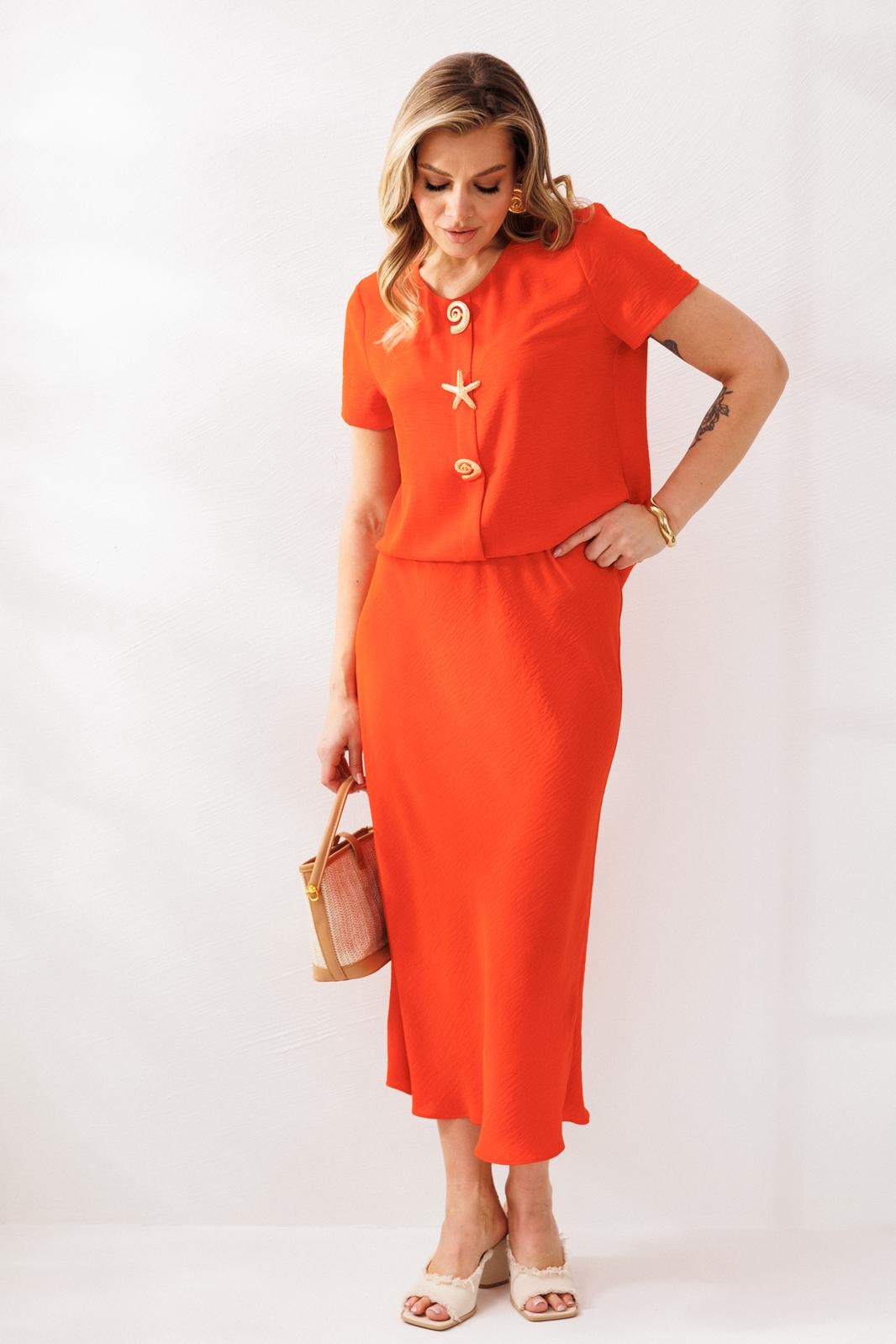 Нарядный женский костюм, состоящий из блузы и юбки, выполнен из костюмно-плательной ткани (тянется).