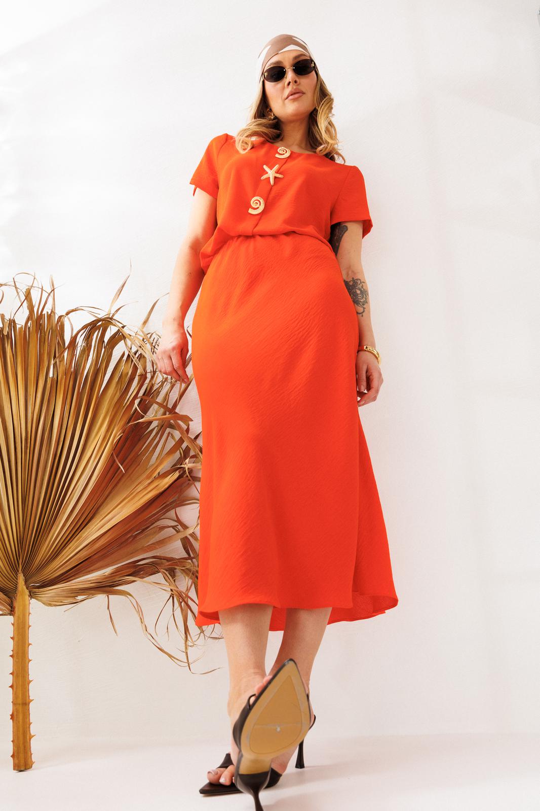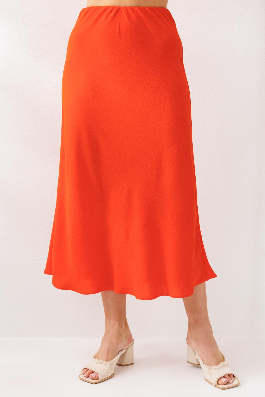 Юбка расширенная к низу. Верхний срез оформлен поясом с эластичной резинкой. Юбка без подкладки.