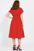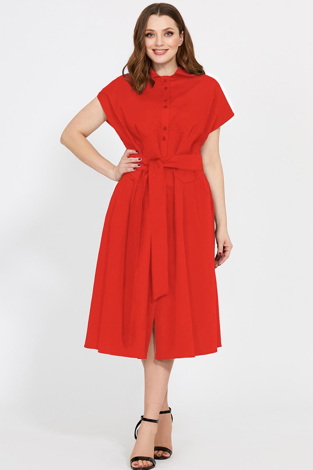 Платье женское полуприлегающего силуэта расширенное к низу, со спущенным рукавом. Выполнено из сатина с добавлением хлопка (чуть тянется). По центру платья отрезная планка доверху на застежке. Воротник рубашечного типа. По талии фигурная кокетка от которой расходятся складки. Через шлевки протянут широкий отделочный пояс.
