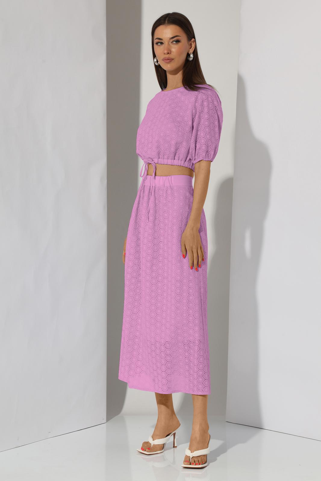 Комплект женский, состоит из топа и юбки. Выполнен из хлопковой плательной ткани.