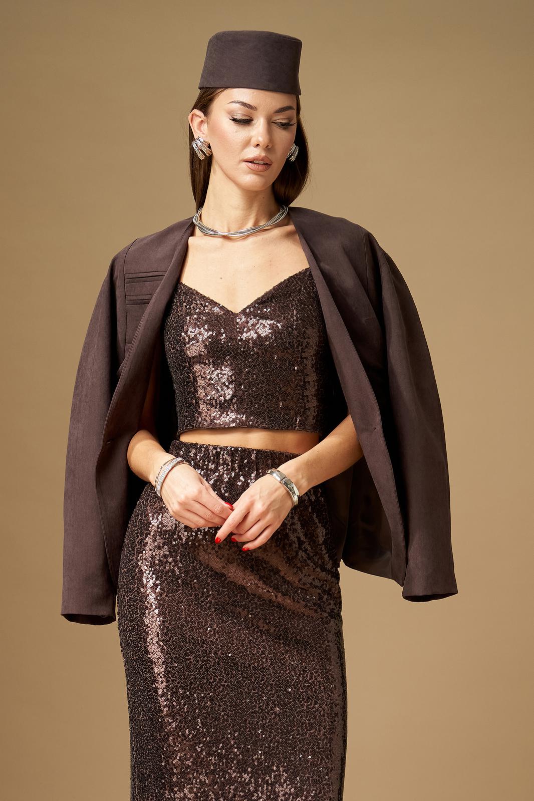 Комплект женский, состоит из жакета, юбки и топа.