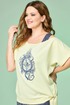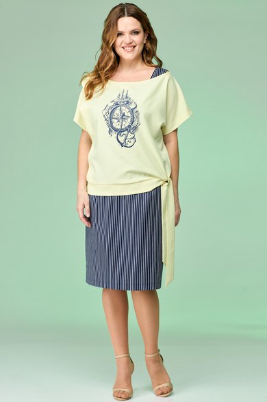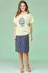 Платье полуприлегающего силуэта с коротким рукавом и нагрудными вытачками. Блуза свободной формы на притачном манжете с завязкой, по переду декоративная печать.