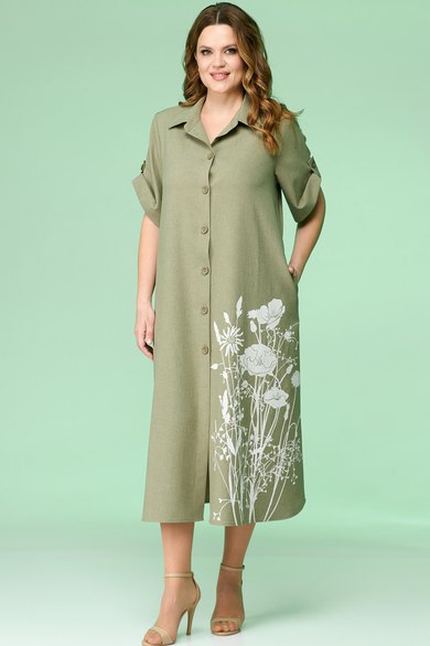 Платье полуприлегающего силуэта, с застежкой по переду, рукав втачной одношовный, декоративная печв=ать по переду, карманы в боковых швах.