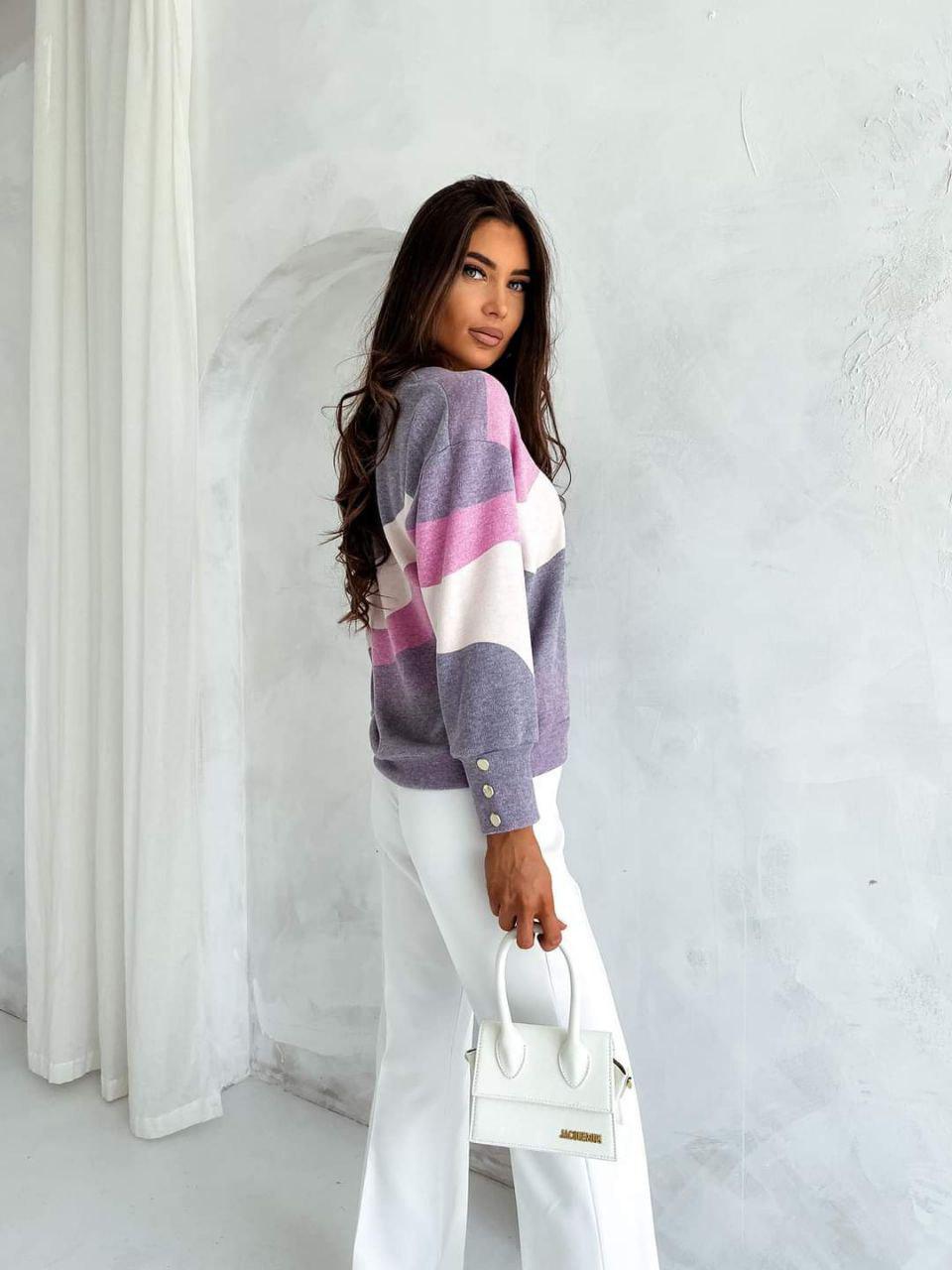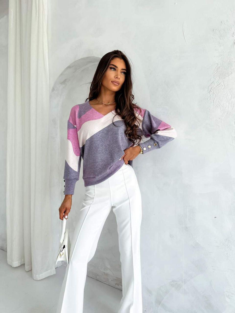 Женский джемпер Nika.pl. Мягкий трикотаж из 100% акрила приятен к телу и дарит ощущение комфорта. Свободный крой с заниженной линией плеча подойдет для фигуры любого типа. Модель дополнена V-образным вырезом горловины и длинными рукавами. Рукава имеют длинную манжету с декоративными пуговицами. По низу резинка, что обеспечит хорошую посадку на любую фигуру.