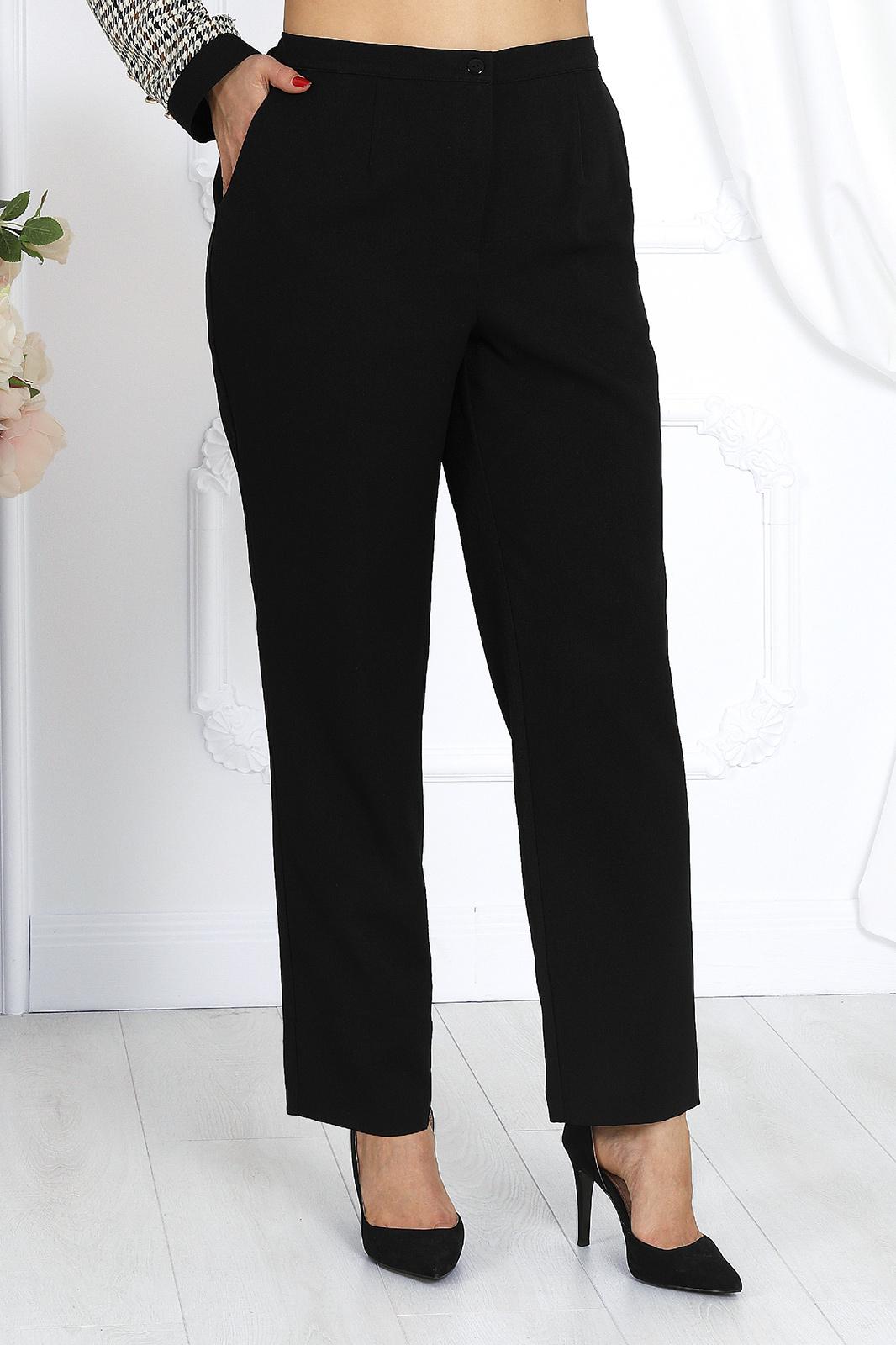 Брюки классические, выполнены из костюмной поливискозы. Модель с центральной застёжкой на тесьму-«молнию», на притачном поясе, застегивающемся на петлю и пуговицу. Передние и задние половинки брюк с талиевыми вытачками, направленными от пояса вниз. Спереди обработаны боковые наклонные карманы. Для лучшего прилегания брюк в области талии в поясе по задним половинкам вставлена эластичная лента. Длина брюк по боковому (с поясом) - 105 см.