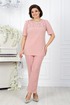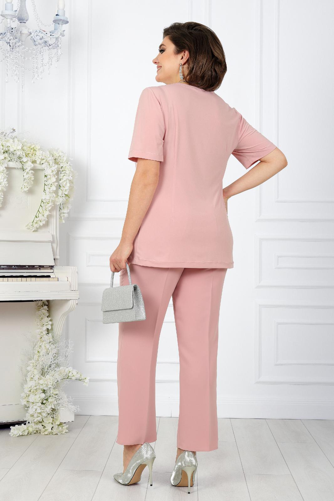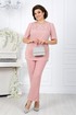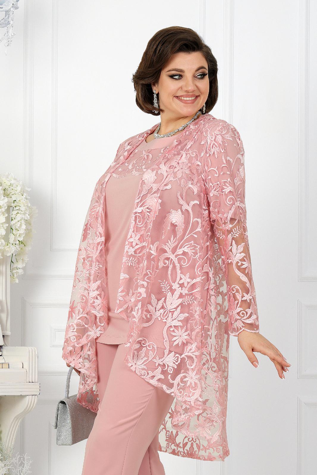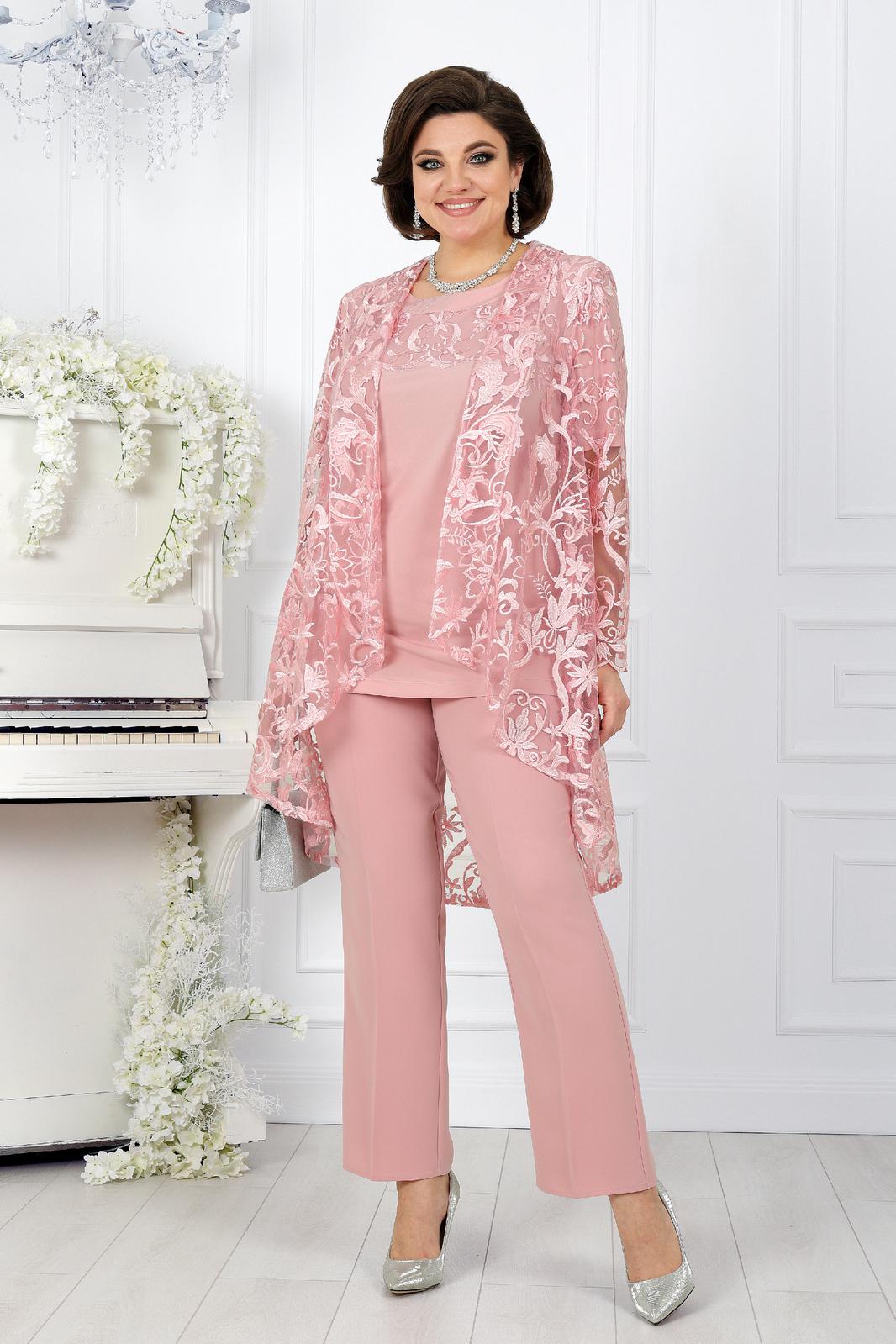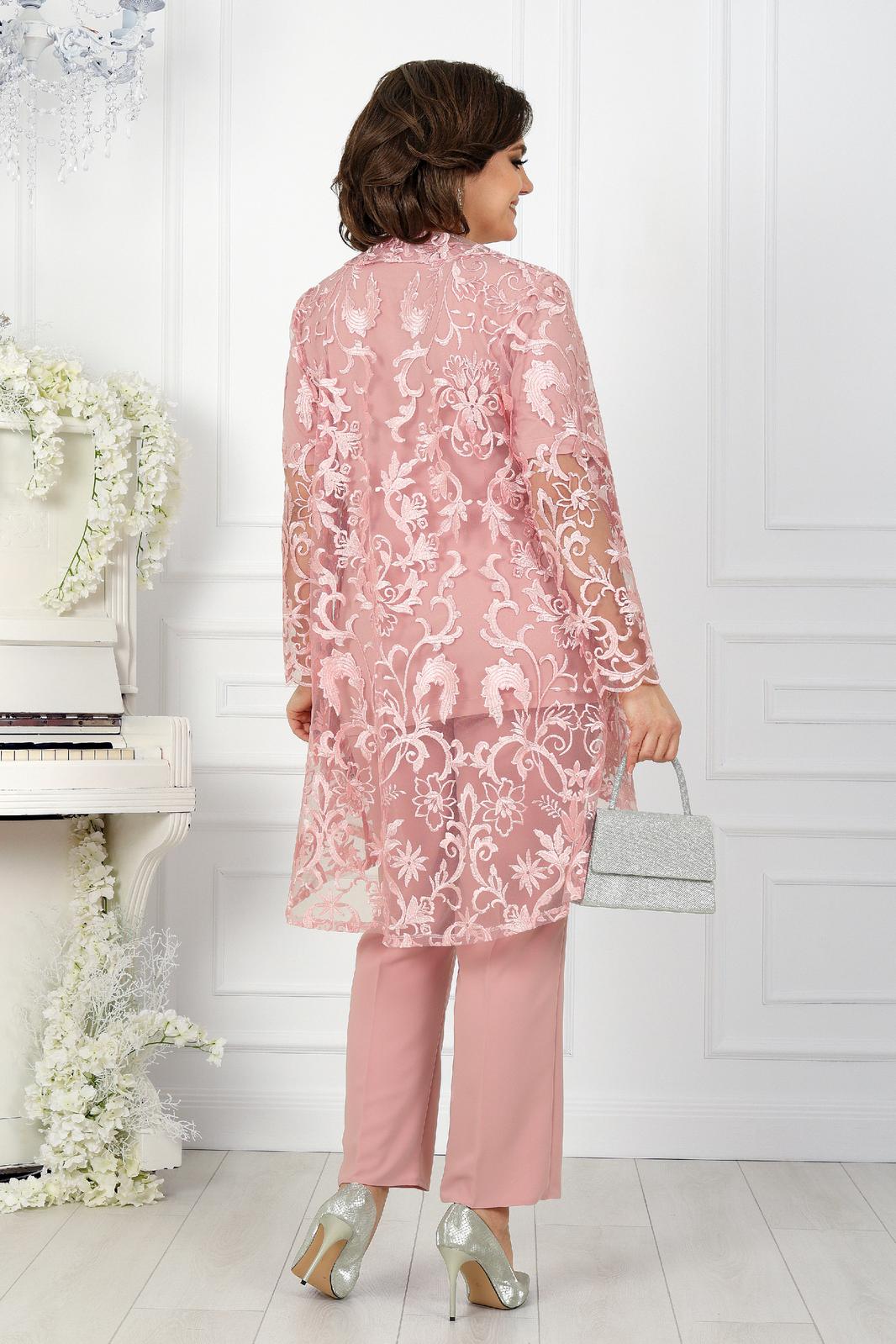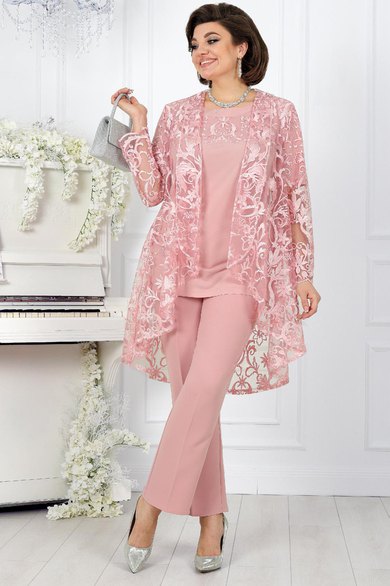 Представляем вам изысканный трех предметный костюм, который станет ярким украшением вашего гардероба на любом торжественном событии, будь то вечеринка, корпоратив, свадебное торжество или юбилей. Комплект брючный 3-х предметный, состоящий из кардигана, блузки и брюк. Кардиган выполнен из гипюра, силуэта трапеция. Длина асимметричная: по переду короче, длиннее к середине спинки. Длина кардигана по посередине спинки 108,0 см. Линия горловины и борта оформлены отложным воротником-шалью. Рукава втачные, одношовные, длиной 59 см, по низу оформлены фестонами. Блузка выполнена из трикотажного полотна масло, полуприлегающего силуэта, длиной по середине спинки 73.5 см. Перед с нагрудными вытачками, идущими от пройм, с настрочной кокеткой из гипюра, с фигурным низом. Спинка с талиевыми вытачками. Вырез горловины спинки и переда округлый, по переду с подрезной планкой, декорированной стразами. Рукава втачные, одношовные, длиной 27 см.