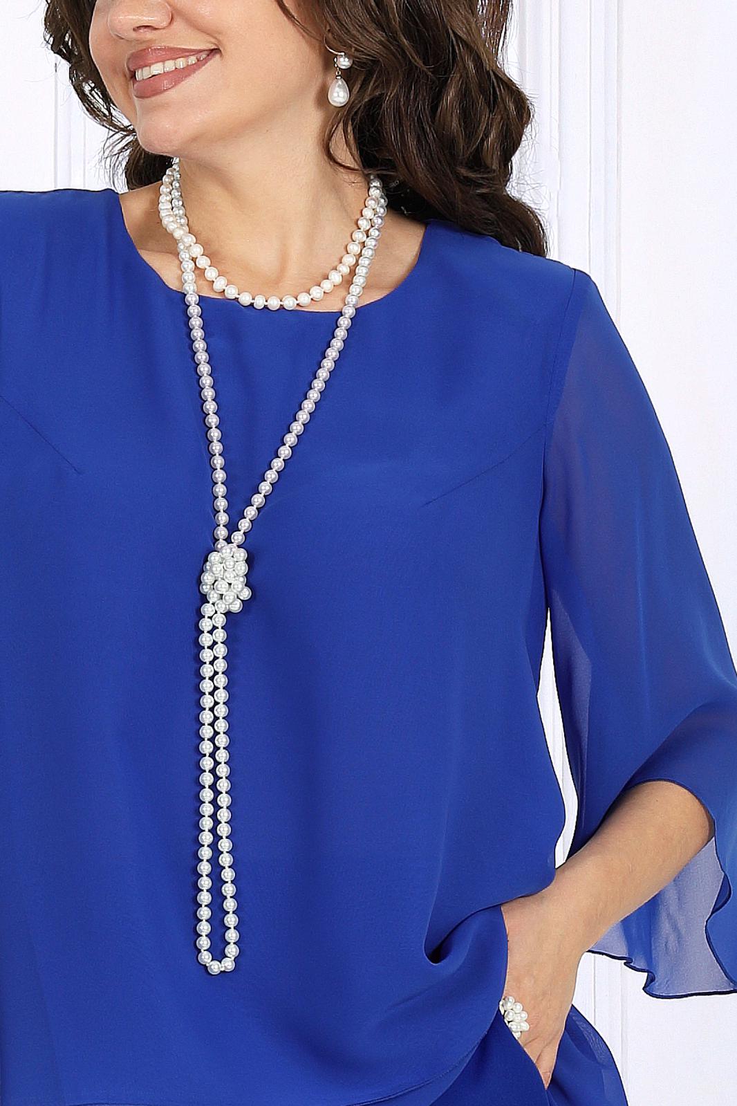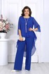 Элегантный брючный костюм – идеальный выбор для вечернего выхода, торжества или особого случая. Легкая шифоновая туника с асимметричным кроем и струящимися рукавами добавляет образу воздушности и утонченности. Удлиненная спинка делает силуэт элегантным и зрительно вытягивает фигуру. Прямые классические брюки из костюмной ткани великолепно садятся по
