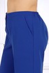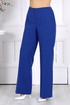 Брюки классические длинные, прямого силуэта, с посадкой на талии, выполнены из костюмно-плательного ткани. Модель с центральной застёжкой на тесьму-«молнию», на притачном поясе, застегивающемся на петлю и пуговицу. Передние и задние половинки брюк с талиевыми вытачками, направленными от пояса вниз. Спереди обработаны боковые наклонные карманы. Для лучшего прилегания брюк в области талии в поясе, по задним половинкам вставлена эластичная лента. Длина брюк по боковому (с поясом) – 107 см (46-50 р-р.), 108 см (52-54 р-р), 109 см (56-60 р-р).