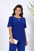 Блузка полуприлегающего силуэта, выполнена из трикотажного полотна «масло». Модель без плечевых накладок. Горловина округлой формы, спереди оформлена фигурным вырезом и отрезной бейкой. Рукав короткий, втачной. Длина блузки – 63 см; длина рукава – 23 см.