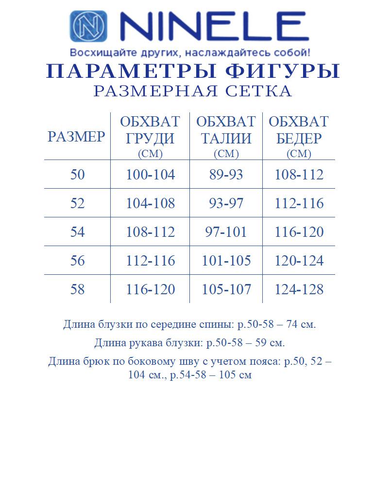 - Тип ткани: блузка - полиэстер 100%; брюки – полиэстер 97%, спандекс 3%