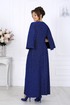 Туника полуприлегающего силуэта с расширением к низу, выполнена из трикотажного полотна с фактурной лицевой стороной «люрекс». Модель отрезная по линии талии; верхняя часть переда и спинки (лиф) на трикотажной подкладке. Лиф переда с одним рельефным швом, направленным от левой проймы; нижняя часть переда состоит из двух деталей, скрепленных на запах. По линии талии, вдоль рельефа, перед задрапирован сборкой и односторонними складками. На спинке обработаны талиевые вытачки и средний шов с застежкой на потайную тесьму-«молнию» (50 см). Вырез горловины спинки и переда формы «лодочка». Рукав без шва, с отлетными краями; крепится к пройме только в верхней части. Длина туники – 139 см; длина рукава – 51 см.