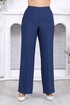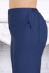 Брюки классические, длинные, с посадкой на талии, выполнены из вискозного полотна. Модель без стрелок. Задние и передние половинки брюк с талиевыми вытачками, направленными от пояса вниз. Спереди обработаны наклонные боковые карманы и центральная застёжка на тесьму-«молнию». Притачной пояс застегивается на 1 петлю и 1 пуговицу; для лучшего прилегания по линии талии в притачном поясе предусмотрена эластичная лента, вставленная по спинке. Длина брюк по боковому (с поясом) –107 см (50-52 р-р.), 108 см (54-58 р-р.).