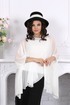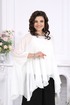 Туника оверсайз свободного силуэта, отрезная по линии груди. Рукав цельнокроеный, по низу собран на узкую резинку. Круглый вырез горловины переда и спинки окантован. Низ туники фигурный, обработан швом «флэш». Длина туники –75,0 см (50-58 р-р); длина цельнокроенного рукава с учетом плечевого шва – 57,5 см (50-52 р-р), 59,0 см (54-58 р-р).