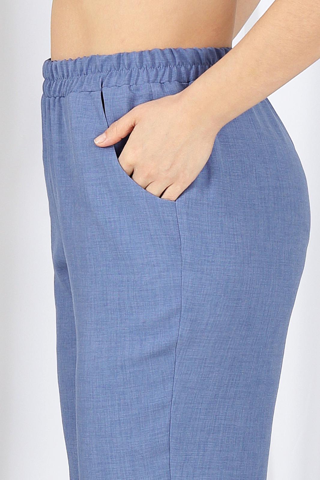 Брюки классические длинные, прямого силуэта, с посадкой на талии, выполнены из ткани «лен-вишер». Модель без застёжки, на притачном поясе, с эластичной лентой внутри. Передние половинки брюк с боковыми наклонными карманами. Длина брюк по боковому (с поясом)-103 см (46-54 р-р), 104,5 см (56-60 р-р), 106 см (62-66 р-р).