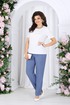 Джемпер полуприлегающего силуэта, выполнен из хлопкового трикотажного полотна. Перед с нагрудными вытачками, выходящими из пройм. От горловины вниз застрочены 4 складки. Горловина переда и спинки округлой формы, по переду углубленная. Срезы горловин окантованы косой бейкой. Рукав втачной, короткий. Длина джемпера -60 см (46-50 р-р), 65 см (52-60 р-р), 67 см (62-66 р-р). Длина рукава – 24,5 см (46-50 р-р), 25,5 см (52-60 р-р), 26,5 (62-66 р-р).