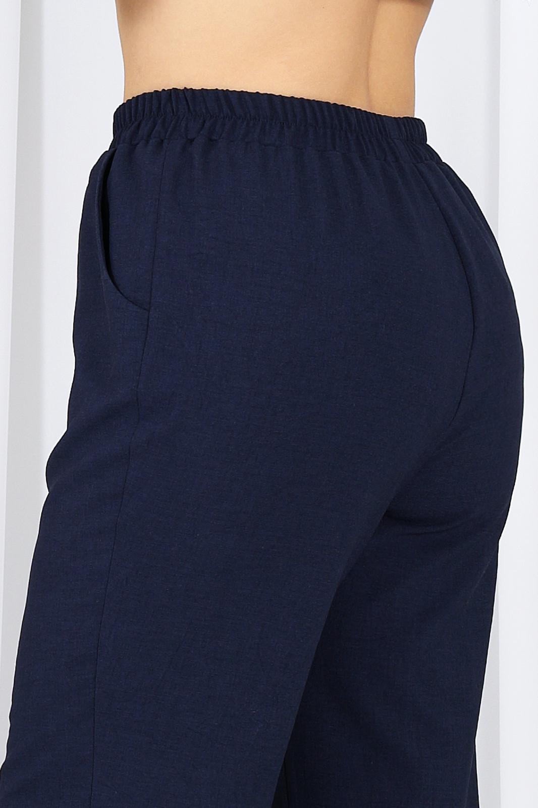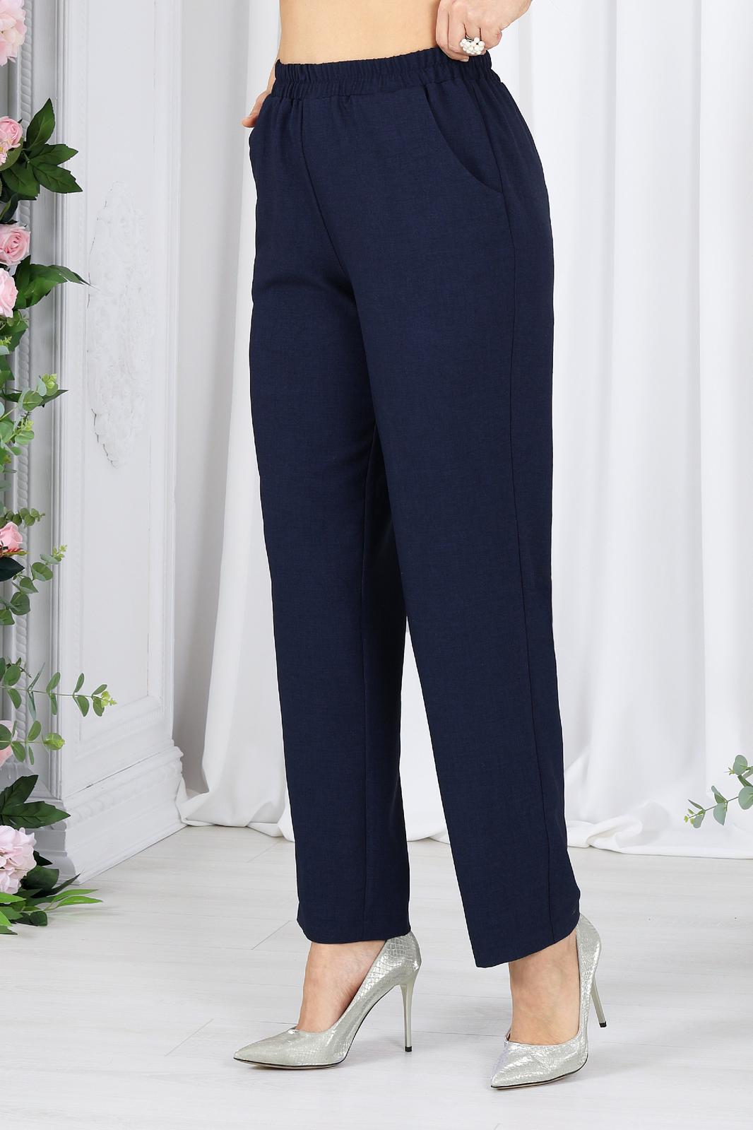 Брюки классические длинные, прямого силуэта, с посадкой на талии, выполнены из ткани «лен-вишер». Модель без застёжки, на притачном поясе, с эластичной лентой внутри. Передние половинки брюк с боковыми наклонными карманами. Длина брюк по боковому (с поясом)-103 см (46-54 р-р), 104,5 см (56-60 р-р), 106 см (62-66 р-р).