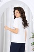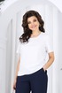 Джемпер полуприлегающего силуэта, выполнен из хлопкового трикотажного полотна. Перед с нагрудными вытачками, выходящими из пройм. От горловины вниз застрочены 4 складки. Горловина переда и спинки округлой формы, по переду углубленная. Срезы горловин окантованы косой бейкой. Рукав втачной, короткий. Длина джемпера -60 см (46-50 р-р), 65 см (52-60 р-р), 67 см (62-66 р-р). Длина рукава – 24,5 см (46-50 р-р), 25,5 см (52-60 р-р), 26,5 (62-66 р-р).