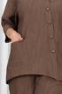Свобода, легкость и стиль — всё это воплощено в этом изысканном летнем комплекте. Воздушная блузка из мягкого вискозного крэш-полотна очаровывает своим нестандартным кроем: асимметричная застёжка на пуговицах, цельнокроеные рукава длиной ¾ с аккуратными манжетами и оригинальный V-образный вырез на спинке с завязками создают образ, в котором хочется двигаться, жить, вдохновлять. Накладной карман на переде добавляет уютной небрежности — как штрих художника на холсте. Сдержанный, но выразительный. Повседневный, но нарядный. Комплект, в котором чувствуешь себя настоящей женщиной — уверенной, лёгкой, красивой.