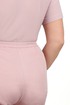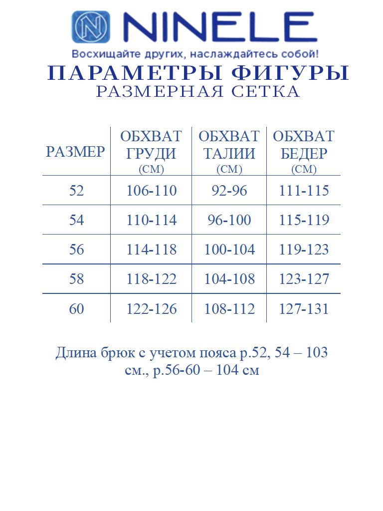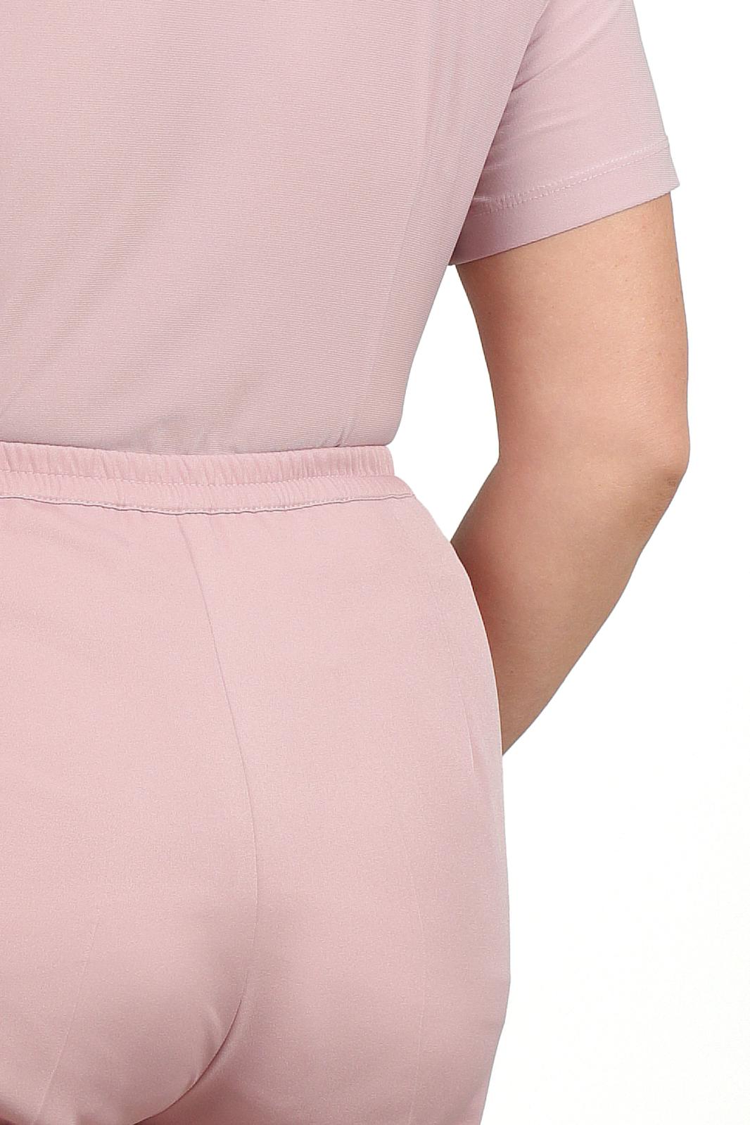 Брюки классические, с посадкой на талии, на притачном поясе, с застёжкой на тесьму-«молния», расположенную в среднем шве передних половинок, и 1 петлю и 1 пуговицу на поясе. Передние и задние половинки брюк с талиевыми вытачками, идущими от пояса вниз, с заутюженными стрелками, с боковыми наклонными карманами на передних половинках. Для лучшего прилегания брюк в области талии в поясе со стороны спинки вставлена резинка.