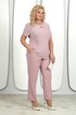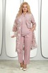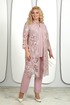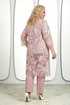 Комплект брючный 3-х предметный, состоящий из кардигана, выполненного из гипюра, джемпера, выполненного из трикотажного полотна «масло» и брюк, выполненных из костюмно-плательной ткани.