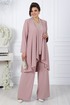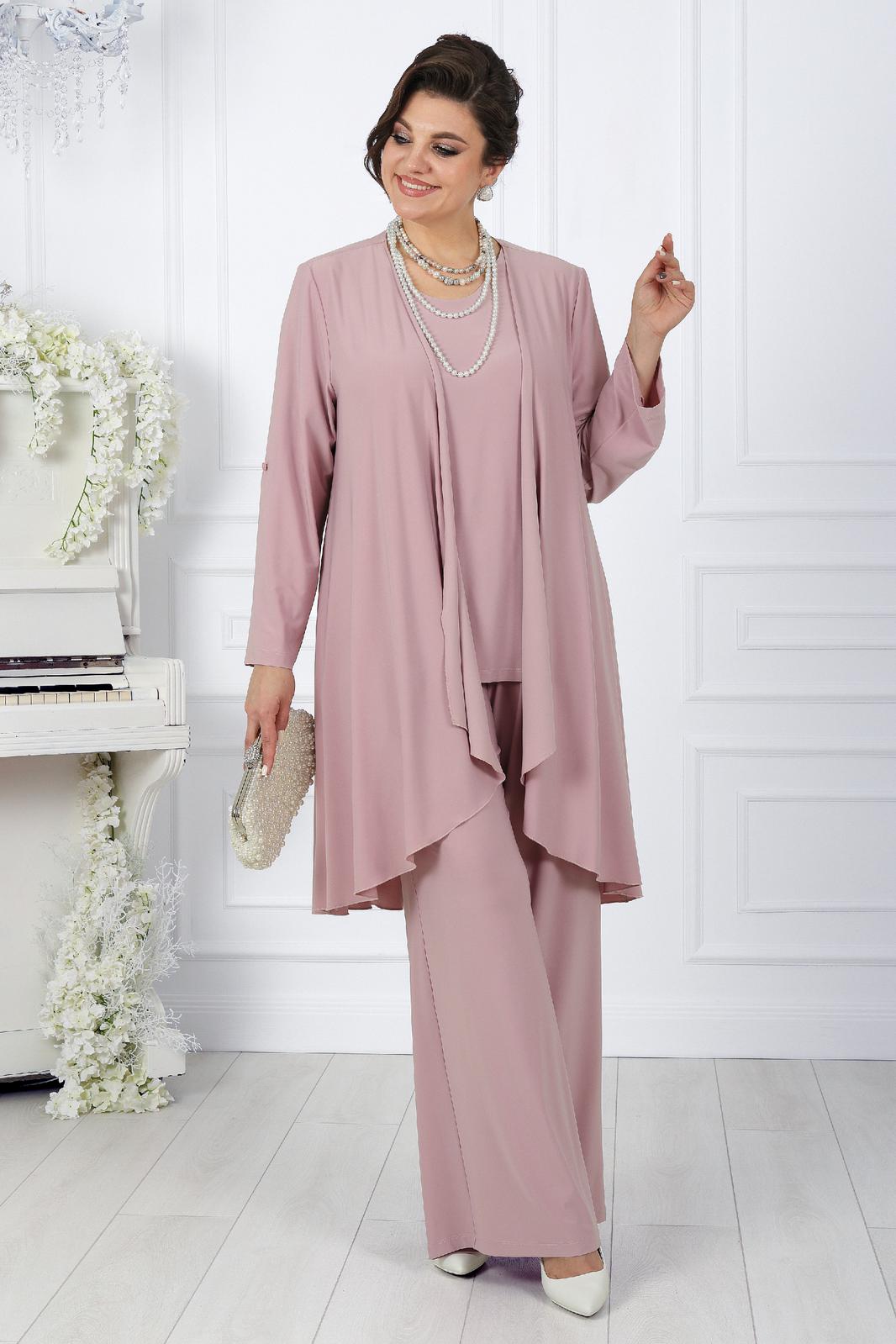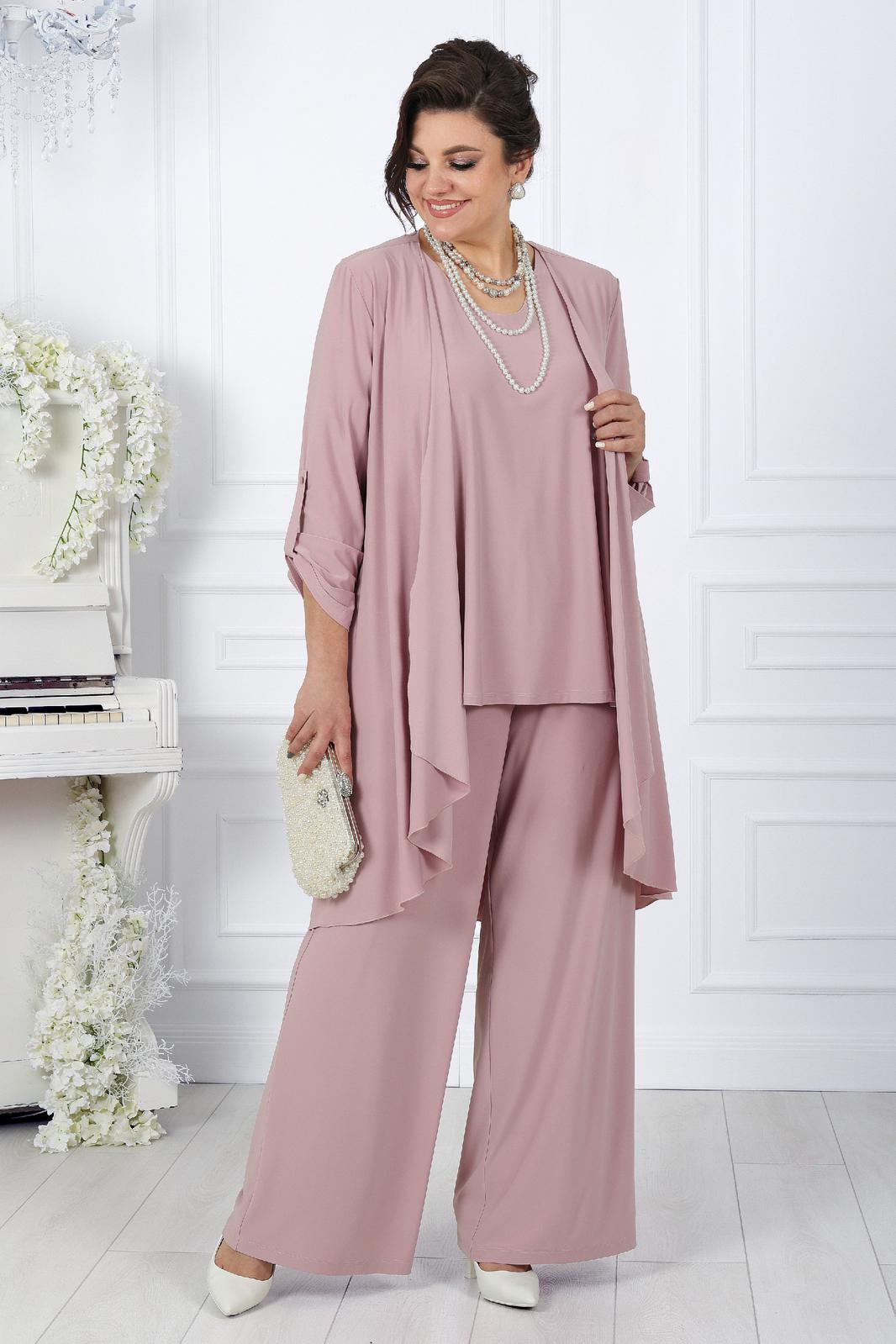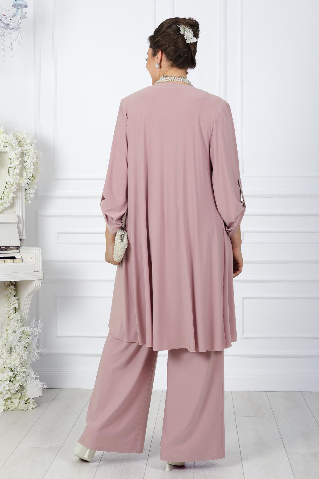 Представляем вашему вниманию элегантный и универсальный женский костюм - идеальное решение для особых случаев и повседневной жизни. Свободный силуэт костюма не сковывает движения, что особенно важно для женщин больших размеров. Ассиметричная форма низа кардигана легко формирует правильный силуэт, подчеркивая женственность и изящество.
