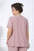 Футболка свободного силуэта, расширенная к низу. Длина по середине спинки 68 см. Горловина переда и спинки округлая, обтачная, по переду углубленная. Рукава втачные, одношовные, длиной 22,5 см.