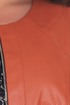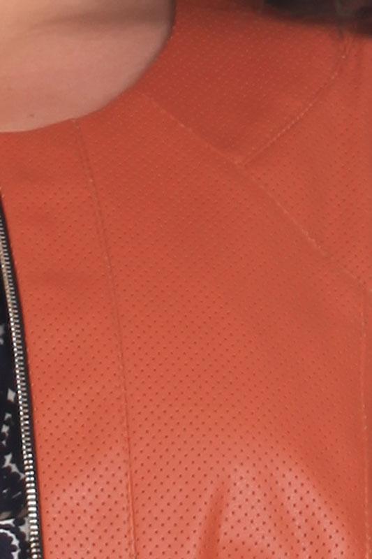 Костюм состоит из жакета и платья. Жакет полуприлегающего силуэта из искусственной кожи, на молнии, кармашки также на молнии. Платье из трикотажного эластичного полотна с коротким рукавом, полуприлегающего силуэта, по талии вытачки. На спинке фигурная деталь с застежкой на декоративной пуговице. Длина платья составляет 108 см., длина рукава 30 см. Длина жакета 57 см., длина рукава 62 см. Ткань тянется. Хит продаж