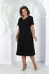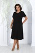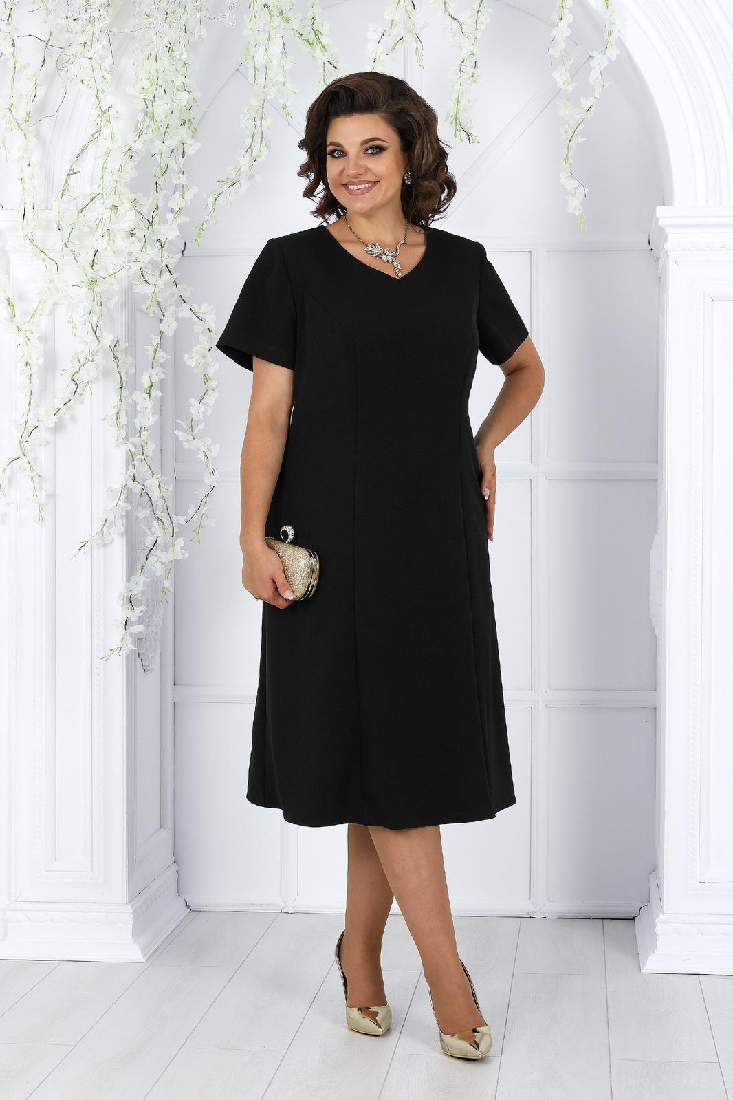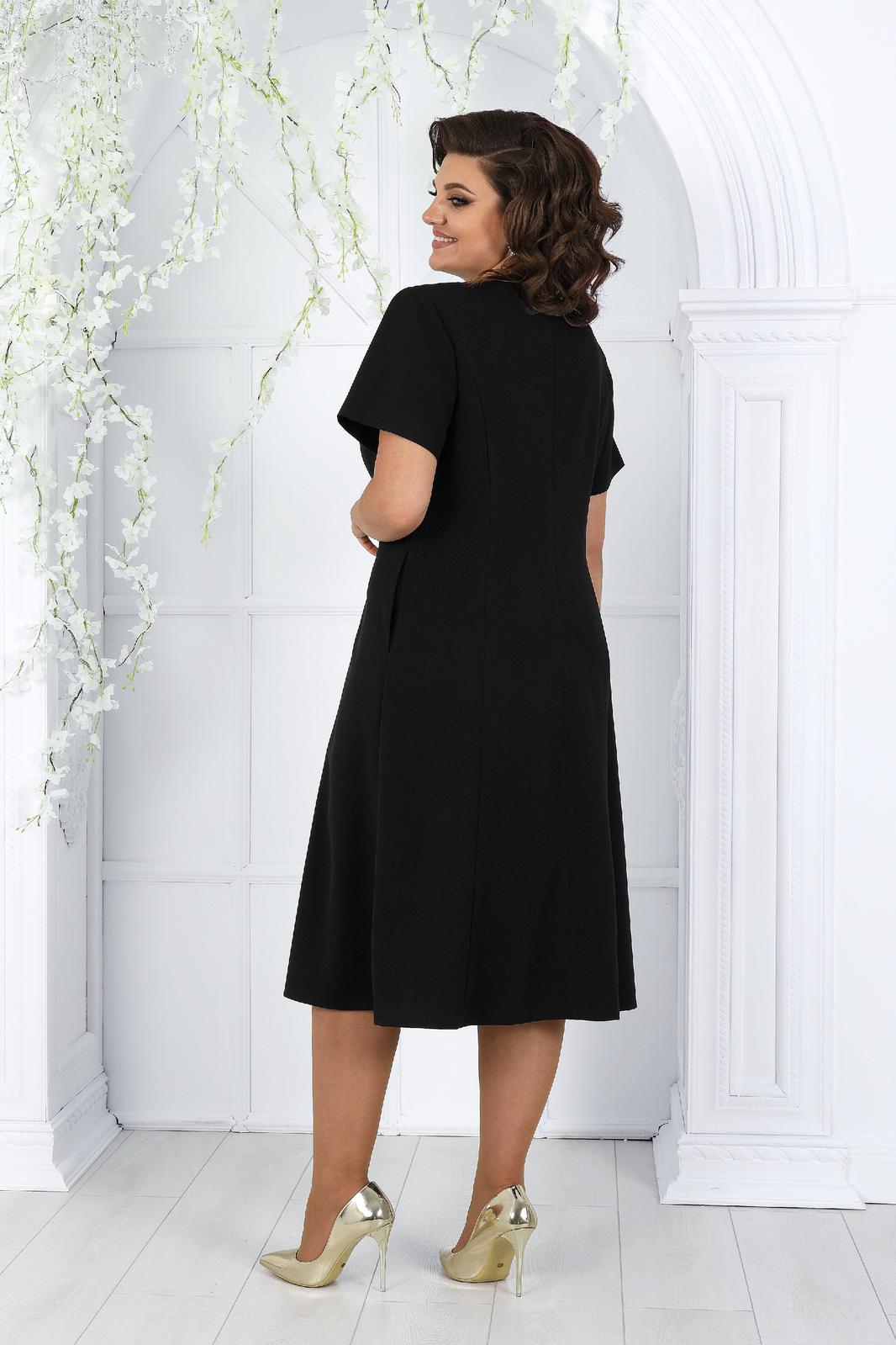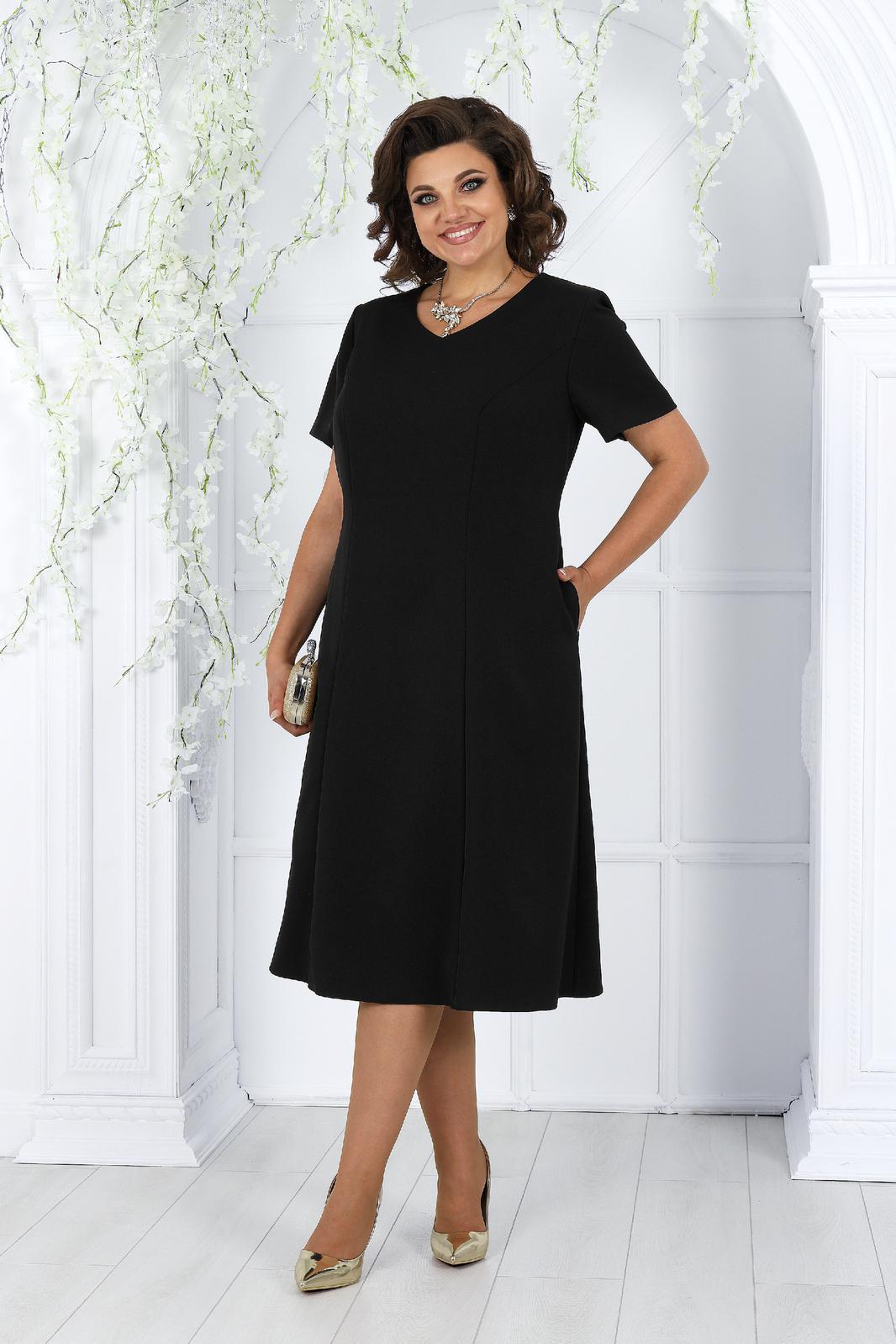 Платье женское полуприлегающего силуэта, расширеное к низу от бедра, длиной по среднему шву спинки 107,0 см. Перед с рельефными швами, проходящими через центр груди, идущими от пройм до низа. В боковых швах расположены карманы. Спинка с рельефными швами, идущими от пройм до низа. В среднем шве спинки обработана застежка на потайную тесьму-молнию. Горловина переда и спинки округлой формы, по переду углубленная. Рукава втачные, одношовные. Длина рукавов 23 см.