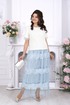 Изысканный комплект, который легко становится основой праздничного и вечернего образа. Эффектная юбка в пол с воздушной фактурой и выразительным декором красиво движется при ходьбе, создавая нарядное настроение, а лаконичная блузка из вискозы мягко уравновешивает образ и делает его особенно элегантным. Костюм смотрится дорого, женственно и при этом остаётся удобным для целого дня.