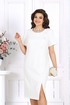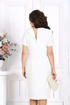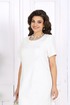 Платье женское, полуприлегающего силуэта, выполнено из костюмно-плательной ткани. Модель на трикотажной подкладке. С плечевыми накладками. Перед с рельефами, направленными от плечевых швов; в нижней части левого рельефного шва обработан разрез, по шву настрочена аппликация, дополненная перламутровыми бусинами. Спинка с рельефами, направленными от плечевых швов; в верхней части среднего шва обработана застежка на потайную тесьму-«молнию» (50см). Горловина круглой формы, углубленная спереди. Рукав втачной, короткий. Длина платья – 104 см; длина рукава – 23 см.