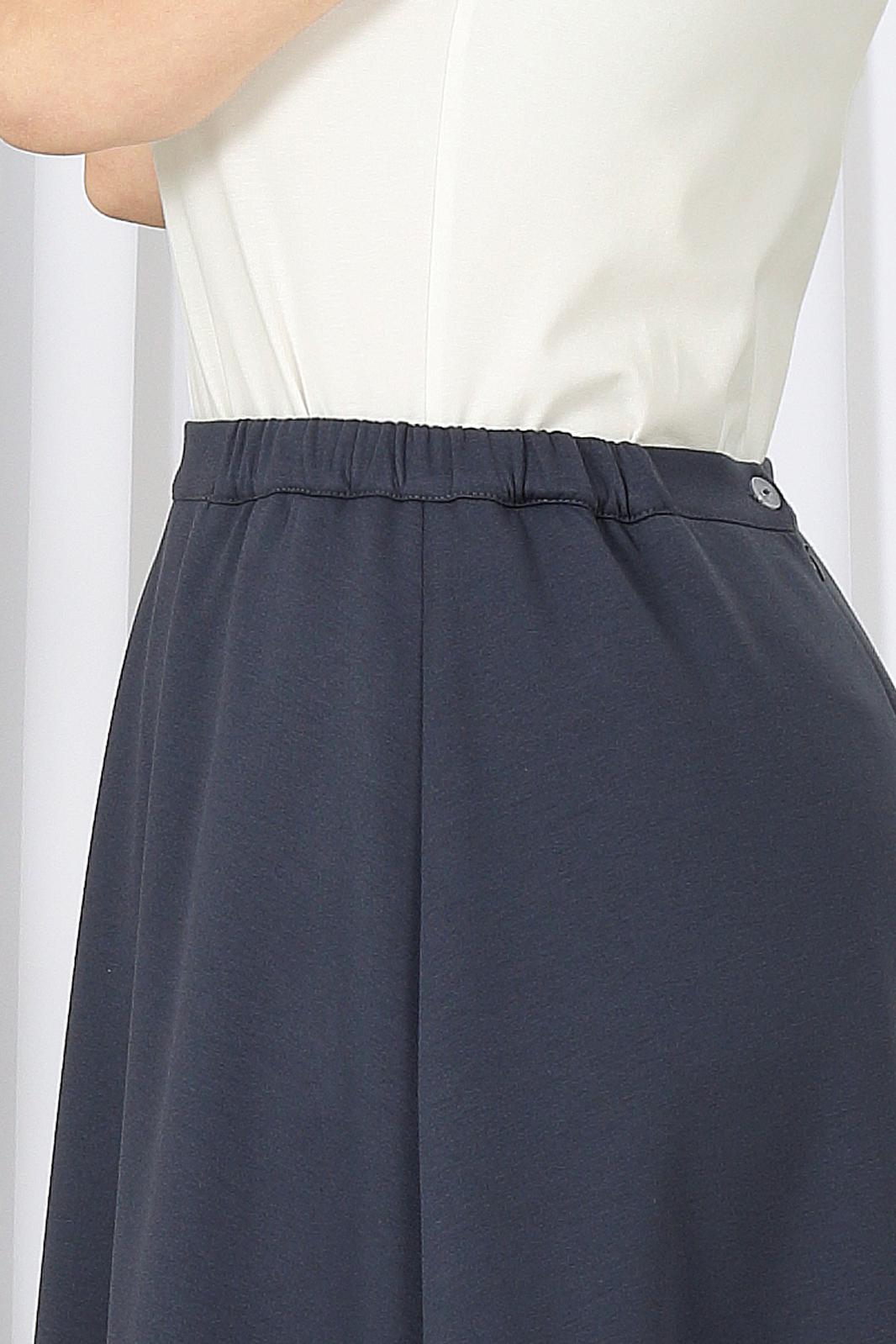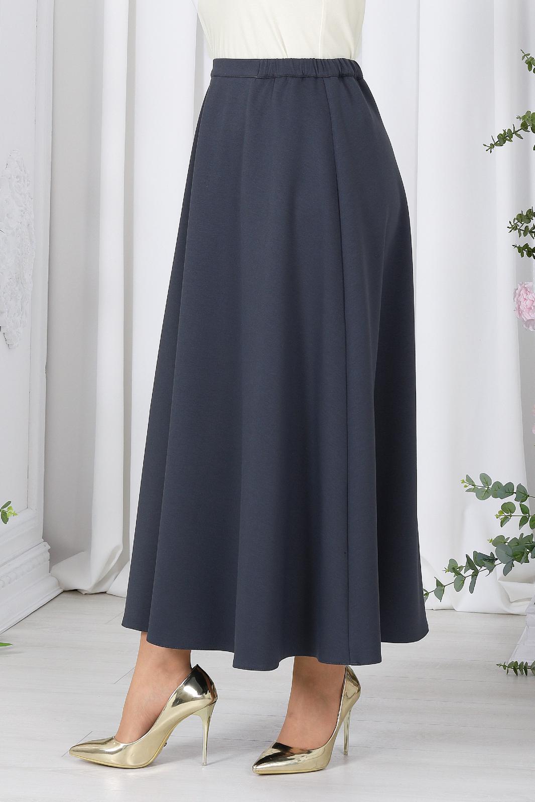 Юбка-полусолнце, с посадкой на талии, выполнена из поливискозного трикотажного полотна. Модель на трикотажной подкладке. В среднем шве заднего полотнища обработана застежка на потайную тесьму-«молнию» (20 см). Притачной пояс застегивается по спинке на 1 петлю и 1 пуговицу; для лучшего прилегания по линии талии предусмотрена эластичная лента, вставленная в пояс над боковыми швами. Длина по боковому (с поясом) - 95 см.