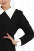 Это платье станет прекрасным выбором для вечерних мероприятий, деловых встреч или особых случаев, когда хочется быть уверенной в себе и выглядеть восхитительно. Выполненное из трикотажного полотна с изысканной фактурой и блеском люрекса, оно привлекает взгляд и подчеркивает вашу индивидуальность. Воротник и манжеты легко снимаются, превращая платье из нарядного вечернего в более повседневный вариант.