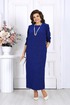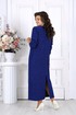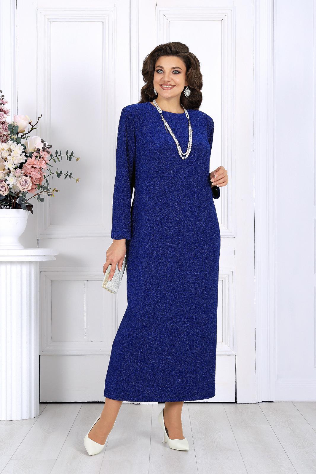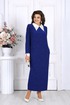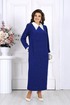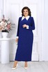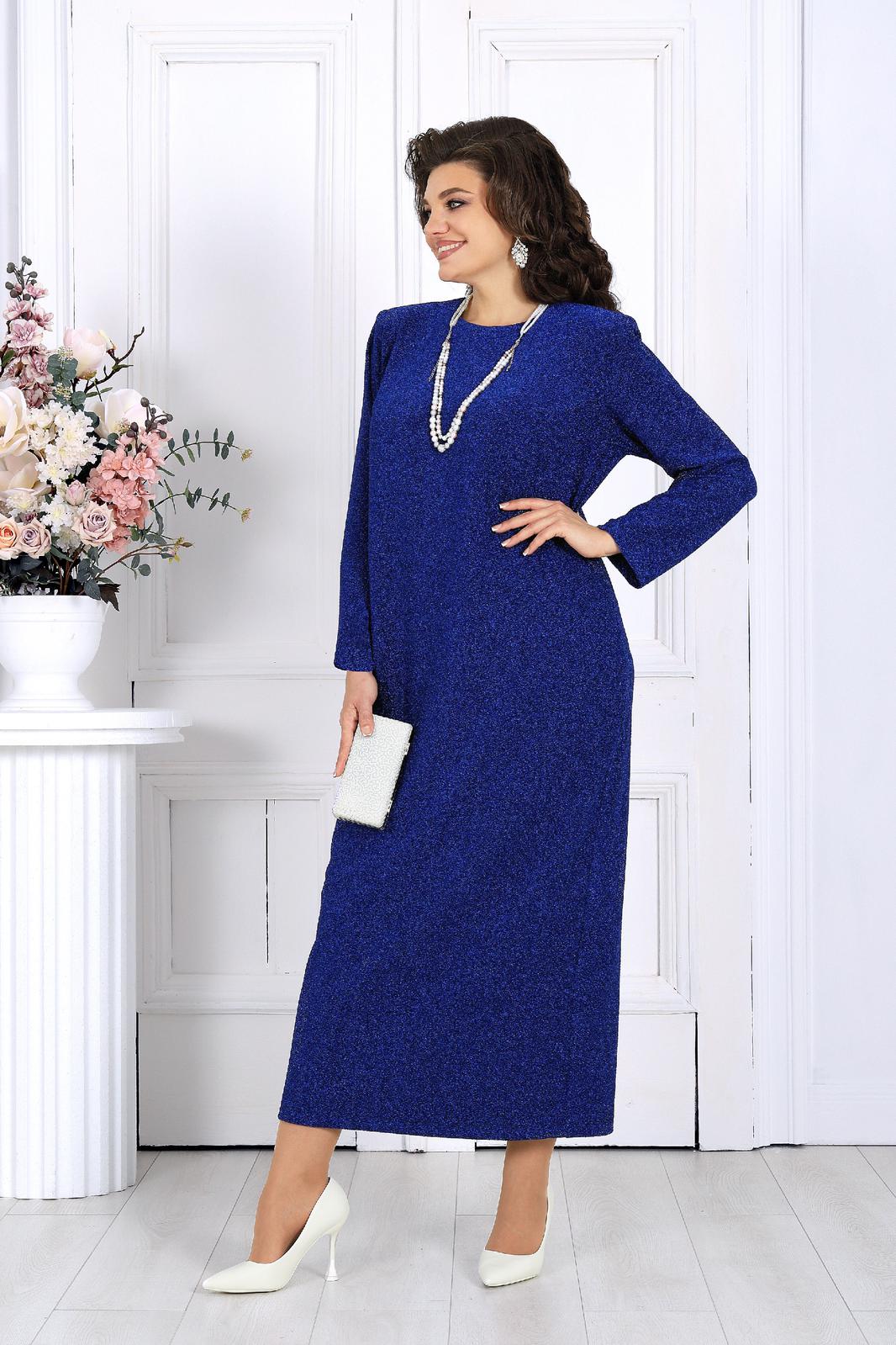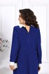 Платье женское полуприлегающего силуэта, выполнено из трикотажного полотна с фактурной лицевой стороной «люрекс». Модель с карманами в боковых швах, на трикотажной подкладке, с плечевыми накладками. Перед с нагрудными вытачками, направленными от пройм. В верхней части среднего шва спинки расположена застежка на тесьму-«молнию» (50 см), в нижней - разрез. Круглая горловина оформлена съемным воротником, декорированным спереди пришивными камнями. Рукав длинный, втачной, низ оформлен съемной манжетой с разрезом. Воротник и манжеты выполнены из сатина и пристегиваются к изделию при помощи прорезных петель и пуговиц.