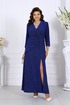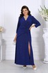 Асимметричный перед с запахом и деликатными драпировками визуально стройнит и формирует правильный силуэт для женщин с формами. Глубокий разрез добавляет образу легкой смелости, оставаясь элегантным и уместным на торжественных мероприятиях.
