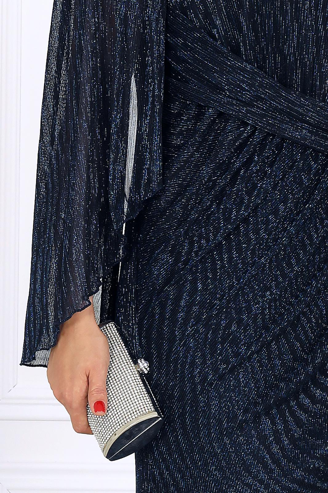 Длинное вечернее платье из элегантной сетки-гофре с нитью люрекс мерцает при каждом движении, словно улавливая в себе отблески огней. Этот деликатный блеск смотрится дорого и изысканно, создавая неповторимый аристократичный образ.