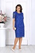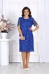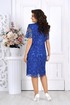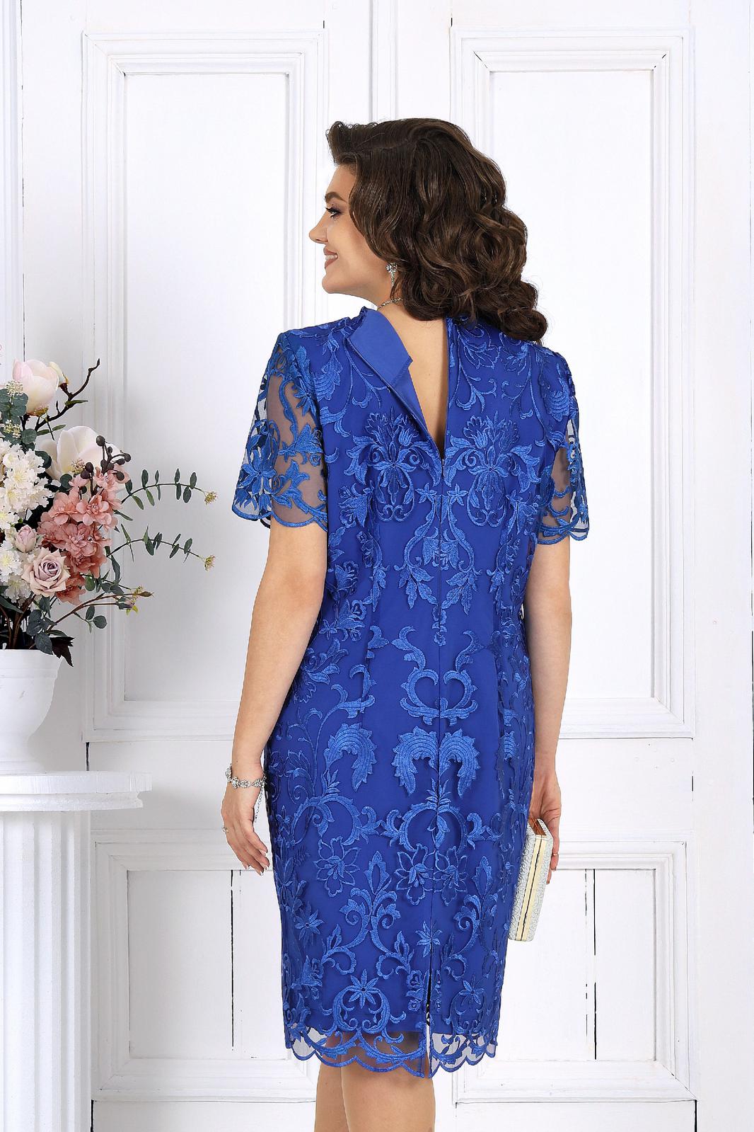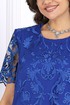 Платье женское, полуприлегающего силуэта, выполнено из гипюра и плательной ткани «сатин». Перед и спинка состоят из двух разных по длине слоев: нижний короче верхнего на 5 см. Модель без подкладки, с плечевыми накладками. Низ платья и рукавов оформлен фестонами. Перед в верхнем и нижнем слоях с нагрудными вытачками, выходящими из пройм. Спинка с талиевыми вытачками и средним швом, в верхней части которого обработана застежка на потайную тесьму-«молнию» (50см), в нижней – разрез. Вырез горловины переда и спинки округлый, углубленный по переду. Рукав короткий, втачной. Верхний и нижний слои платья скреплены по среднему шву, плечевым и проймам. Длина платья (верхний слой) – 104 см; длина рукава – 26 см.