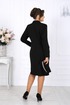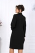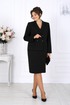 Платье женское, полуприлегающего силуэта, выполнено из костюмной поливискозы. Модель на подкладке, с плечевыми накладками и застежкой в боковом шве на потайную тесьму-«молнию». Перед ассиметричный: правая сторона оформлена в виде двубортного жакета с имитацией застежки на декоративные пуговицы. Спереди обработаны рельефные швы, направленные от пройм и прорезные карманы с клапаном; на левой части переда рельеф заканчивается разрезом. Спинка со средним и рельефными швами, направленным от пройм. Воротник пиджачного типа. Рукав длинный, втачной. Длина платья - 104 см; длина рукава - 61 см.