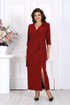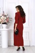 Платье женское полуприлегающего силуэта, выполнено из трикотажного полотна с фактурной лицевой стороной «люрекс». Модель на трикотажной подкладке, с плечевыми накладками и застежкой в левом боковом шве на потайную тесьму-«молнию» (35 см). Перед отрезной по линии талии. Верхняя часть переда состоит из двух деталей, скрепленных на запах; вдоль горизонтального подреза заложены односторонние складки. На нижней части переда обработан рельефный шов с двойным воланом в верхней части и разрезом по низу; от шва к центру направлены односторонние складки. На спинке обработаны талиевые вытачки. Рукав трехчетвертной. Платье дополнено съемным «цветком» из основного полотна. Длина платья – 134 см; длина рукава – 42 см.