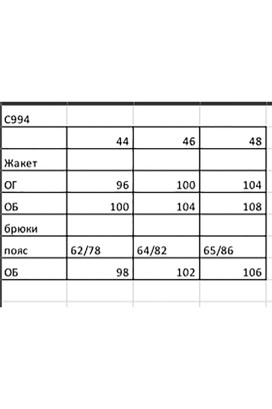 - Тип ткани: жакет П/Э 64% , вискоза 33%, спандекс 3%, брюки П/Э 70%, вискоза 27%, спандекс 3%
