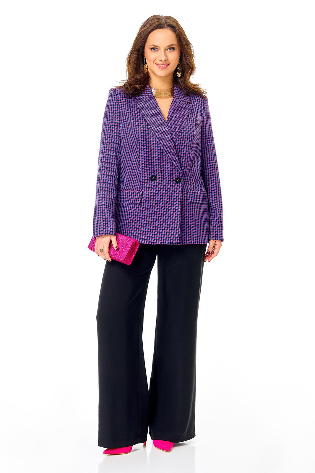 Шикарный комплект, состоящий из жакета и брюк. Жакет прямого силуэта, из ткани с модным принтом,с двубортной застежкой, карманы с клапанами, по спинка шлица, рукав втачной двухшовный со шлицами на три пуговицы. Брюки-палаццо из мягкой струящейся ткани, на резинке, с карманами в боковых швах.