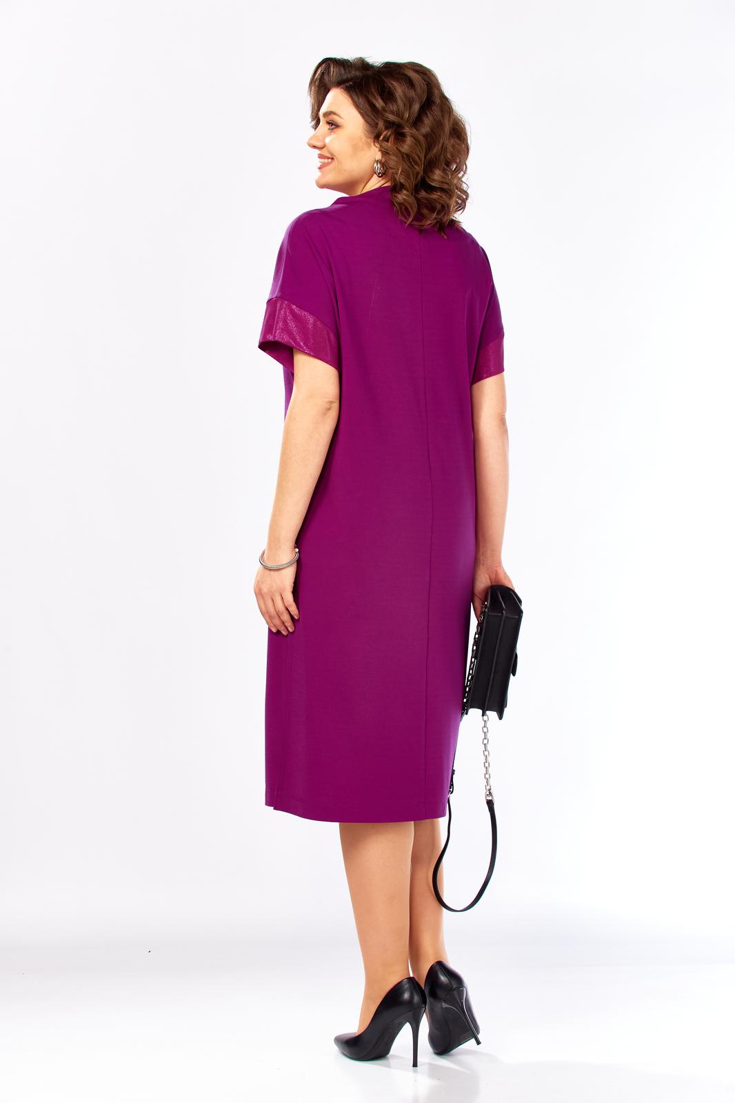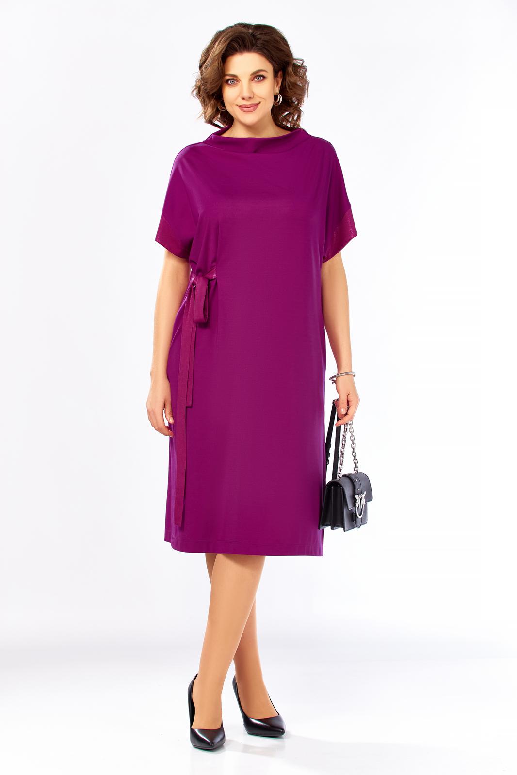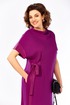 Платье женское, прямого силуэта со спущенным рукавом-манжетом. Цельнокроенный воротник-стойка. С левой стороны в области талии декор, в виде ниспадающего пояса из отделочной ткани. Карманы в боковых швах.