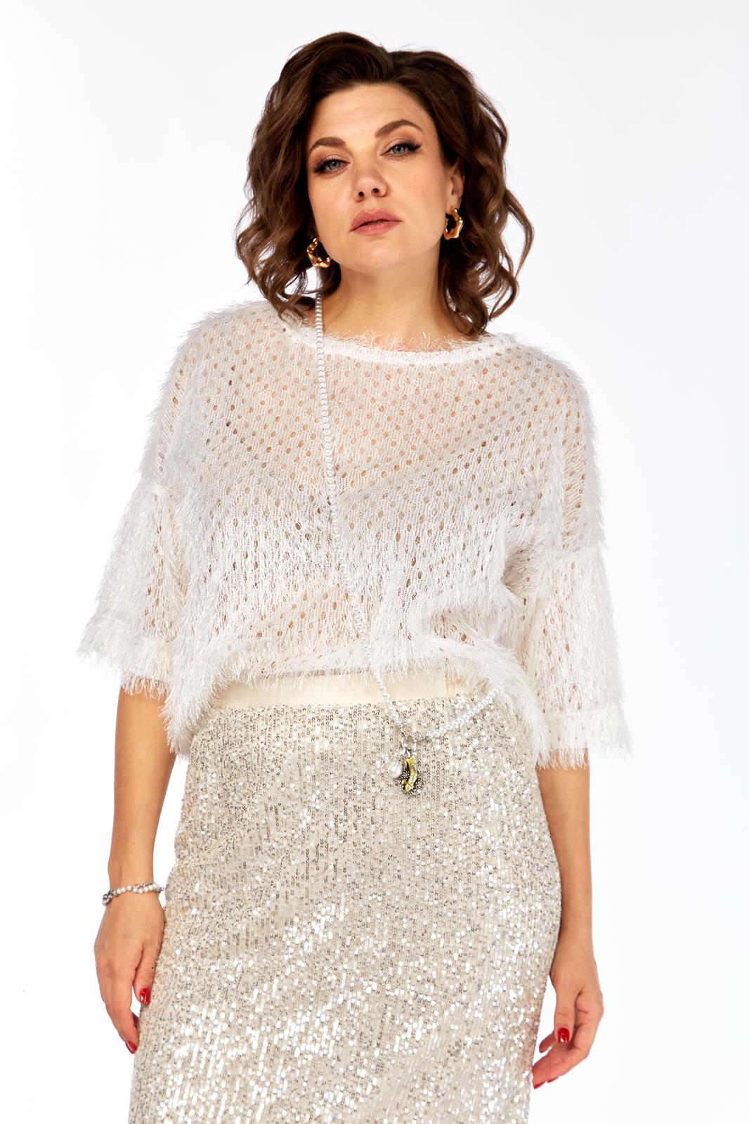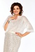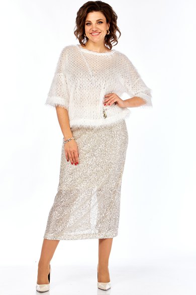 Юбка длиной миди из ткани в паетки, на поясе (резинка по бокам) из отделочной атласной ткани. По спинке средний шов с потайной молнией, заканчивающийся разрезом . Юбка на подкладке.