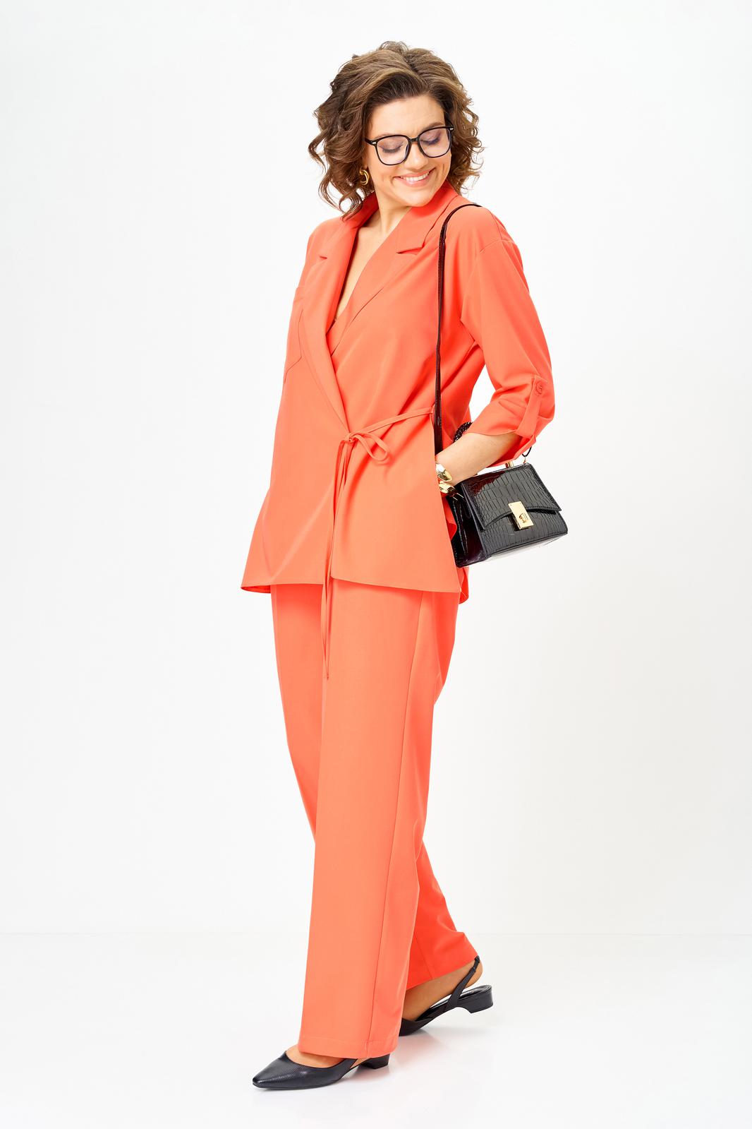 Комплект женский, состоящий из жакета и брюк, выполнен из костюмной ткани, без подкладки.
