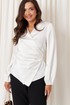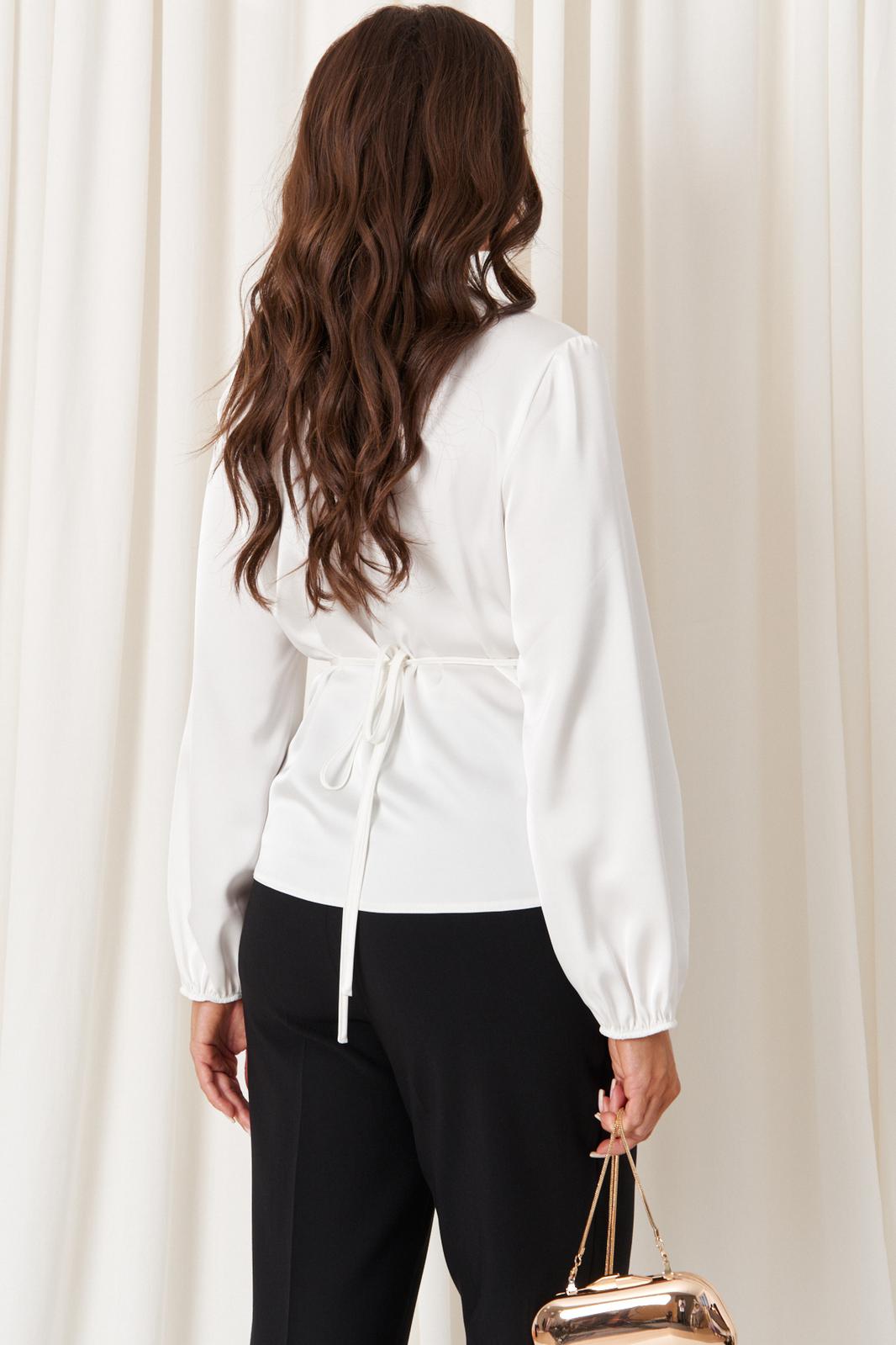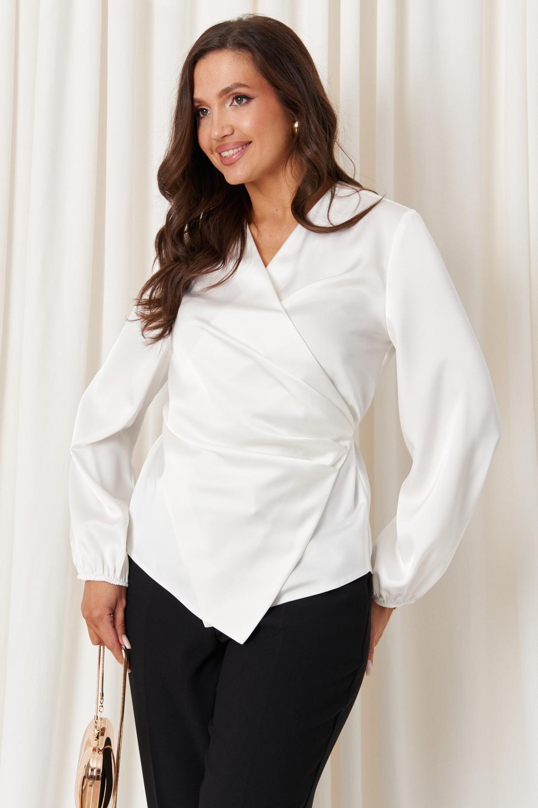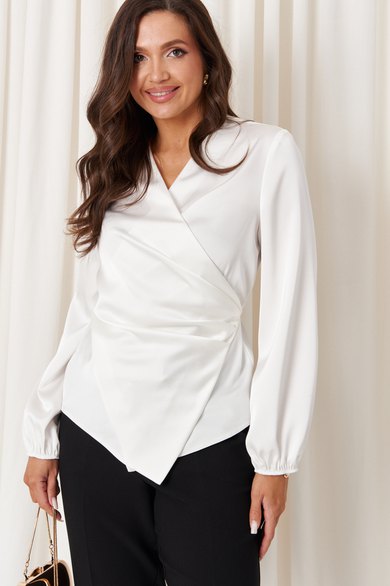 Эта изысканная женская блузка, созданная из высококачественной атласной ткани, станет идеальным выбором для торжественных случаев и особых мероприятий. Полуприлегающий силуэт подчеркивает фигуру, придавая образу элегантность и женственность. Блузка выполнена на запах с фигурным бортом и складками, что добавляет оригинальности и утонченности. Уникальный шнурок, продеваемый в боковом шве через специальное отверстие, позволяет завязывать блузку по спинке, обеспечивая комфортную посадку и возможность регулировки. V-образная горловина визуально удлиняет шею и придаёт блузке стильный вид. Длинные втачные рукава с притачной резинкой по низу создают аккуратные сборки, добавляя динамичности и романтичности. Нежный молочный оттенок делает блузку универсальной для сочетания с различными стилями и цветами в одежде. Атласная ткань обладает приятной текстурой и лёгким блеском, что придаёт изделию особую изысканность. Эта блузка станет отличным дополнением к вашему гардеробу и подчеркнёт ваш стиль в любой торжественной обстановке.