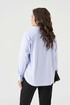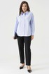 Блуза женская из смесовой ткани с большим содержанием хлопка. Блуза полуприлегающего силуэта. Застежка центральная бортовая на обметанные петли и пуговицы. Горловина обротана отложным воротником с отрезной стойкой. Рукав длинный, втачной, низ рукава оформлен притачной манжетой с застёжкой на обметанную петлю и пуговицу. Длина изделия классическая. Отличный вариант для базового гардероба. В данной блузке вы будете чувствовать себя комфортно и очень стильно.