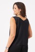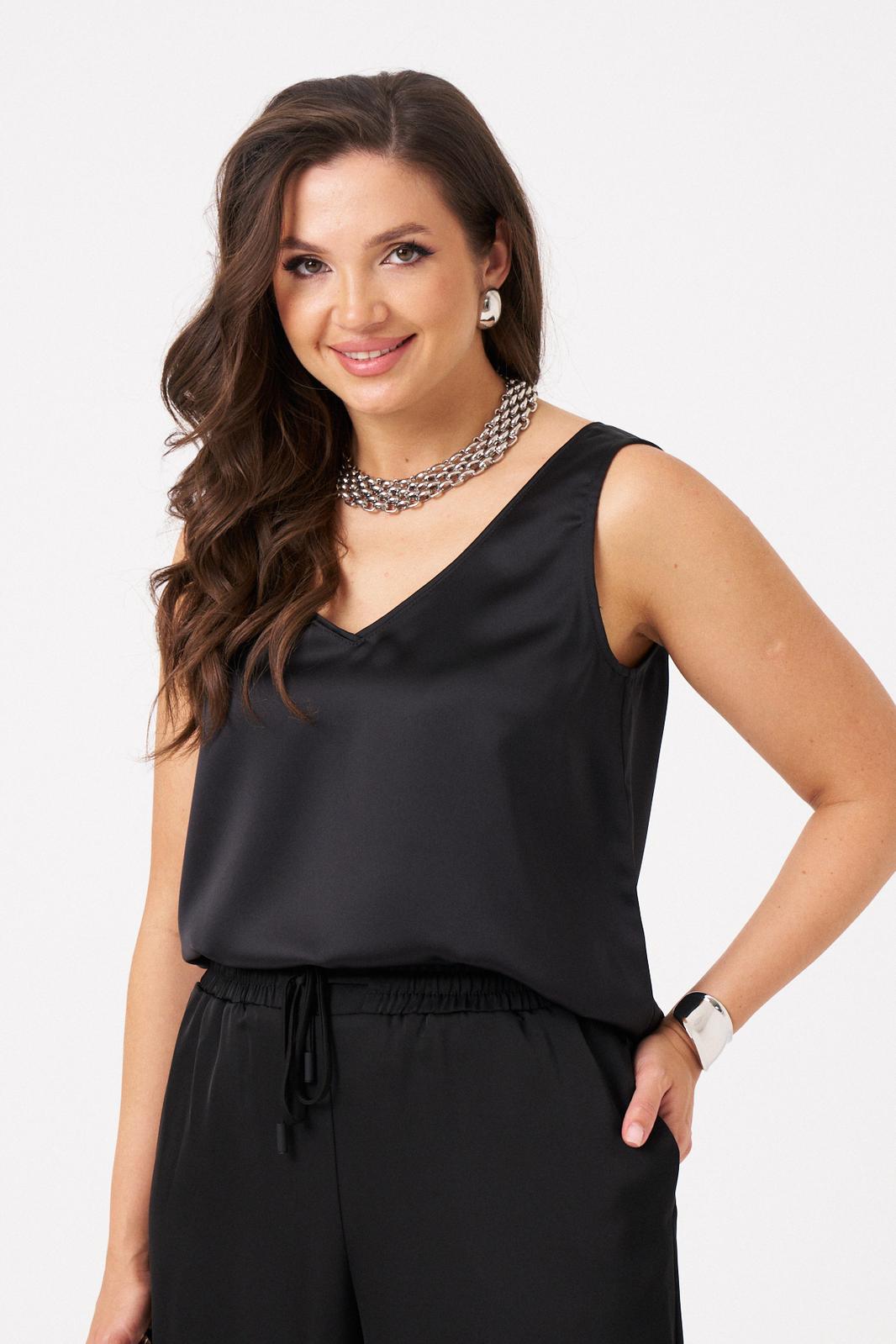 Блузка женская прямого силуэта из струящейся ткани. Подходит как для повседневной носки, так и для торжественных мероприятий. Блузка с V- образной горловиной. Блузка не имеет рукавов. Очень красивая и элегантная блузка, в которой вы всегда будете в центре внимания.